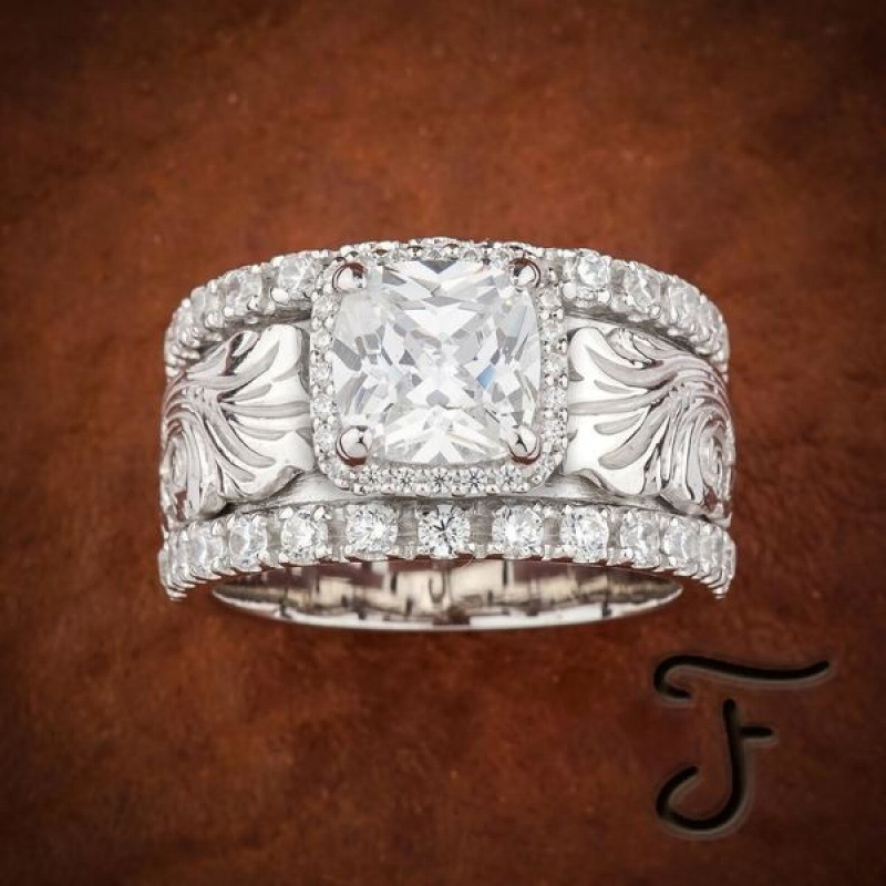 Huajie ヨーロッパとアメリカのクロスボーダー気質リング 3 点セット象嵌ジルコンエレガントなダイヤモンドリングウェディングパーティーマッチングリング
