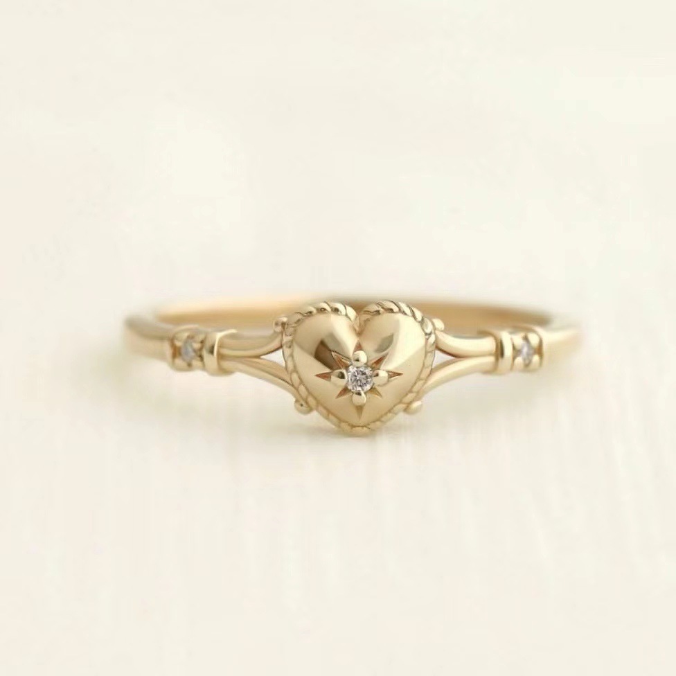華傑シンプルファッションハート型女性金メッキ指輪insネット赤服装装飾愛アクセサリーメーカー直販