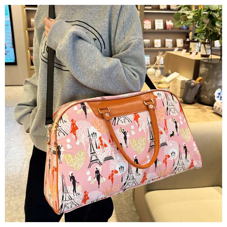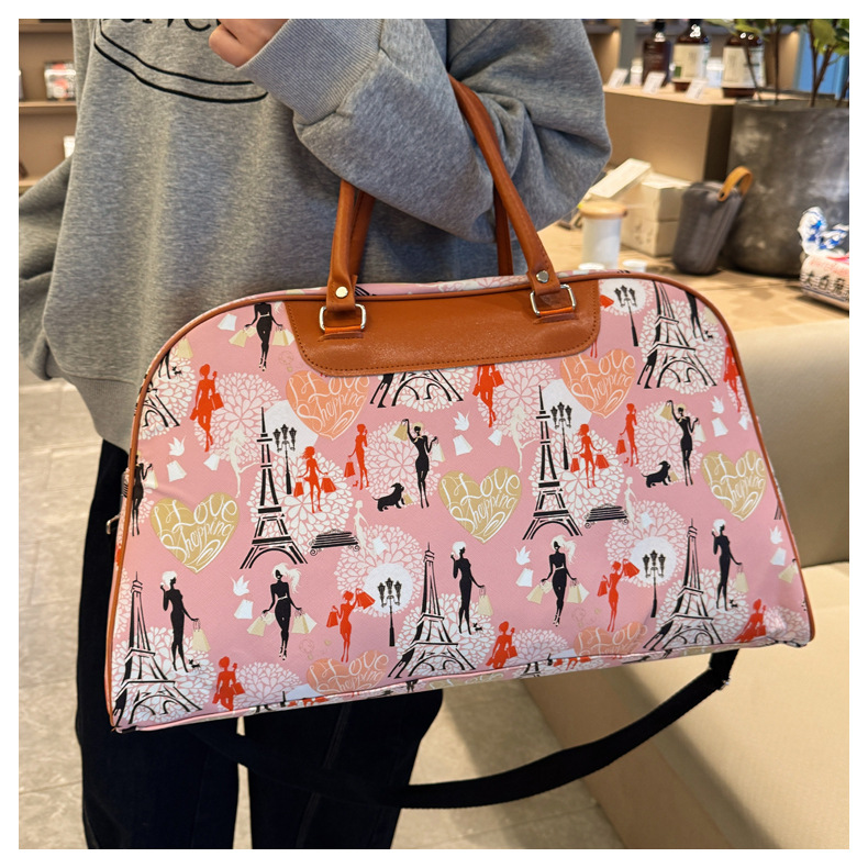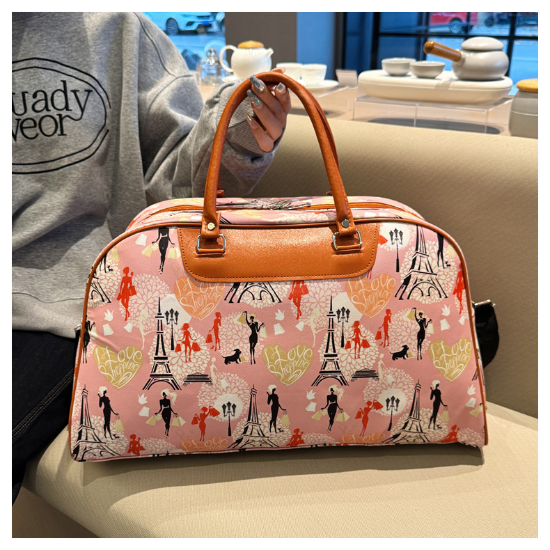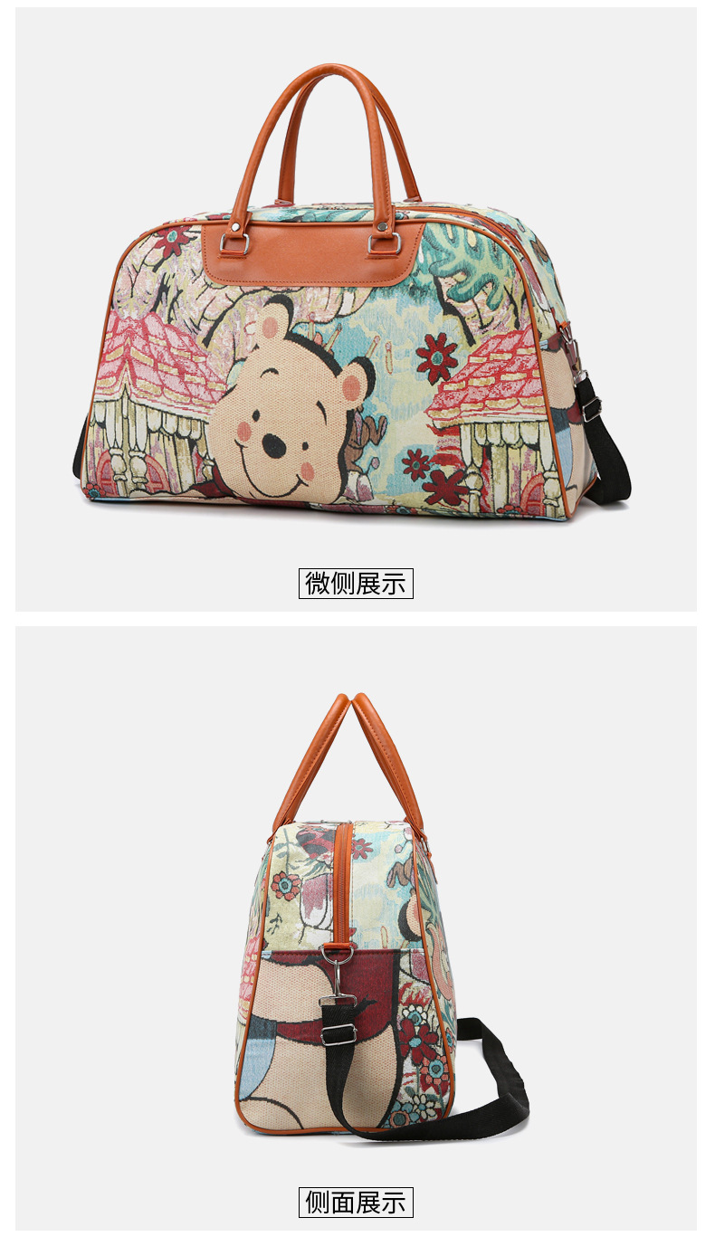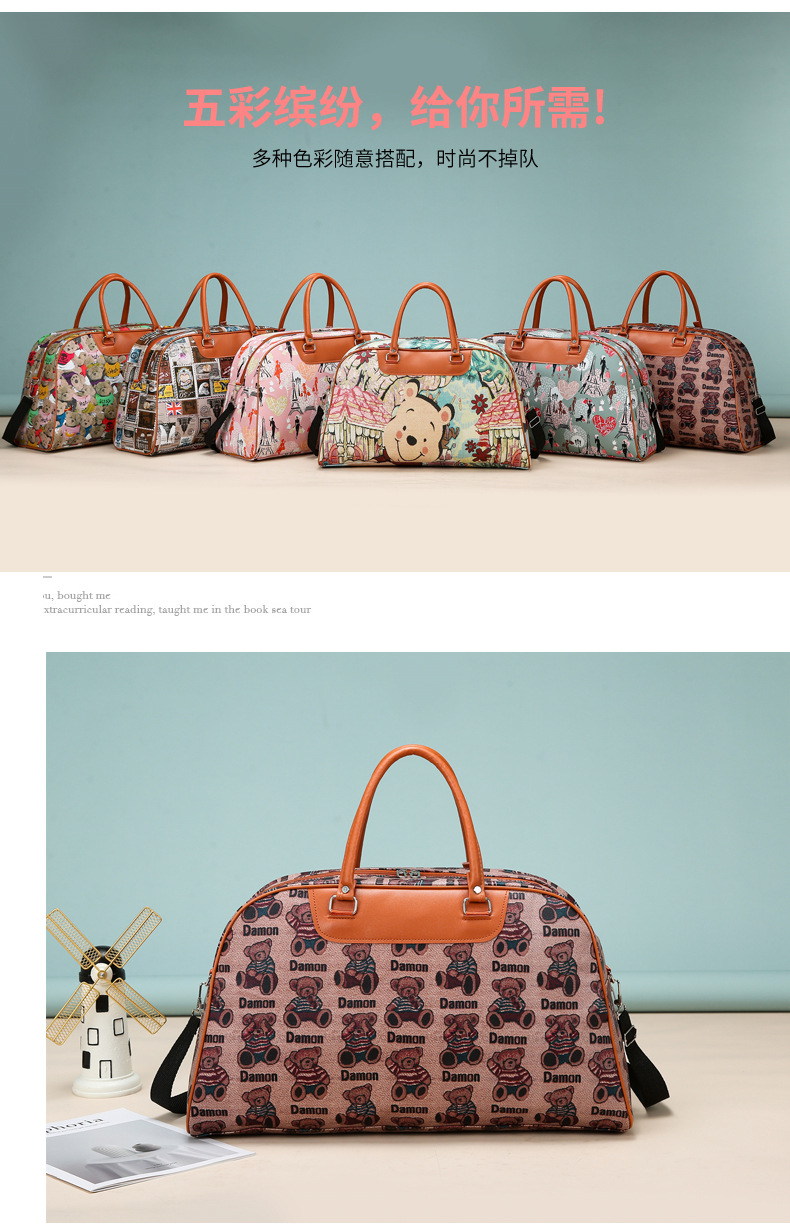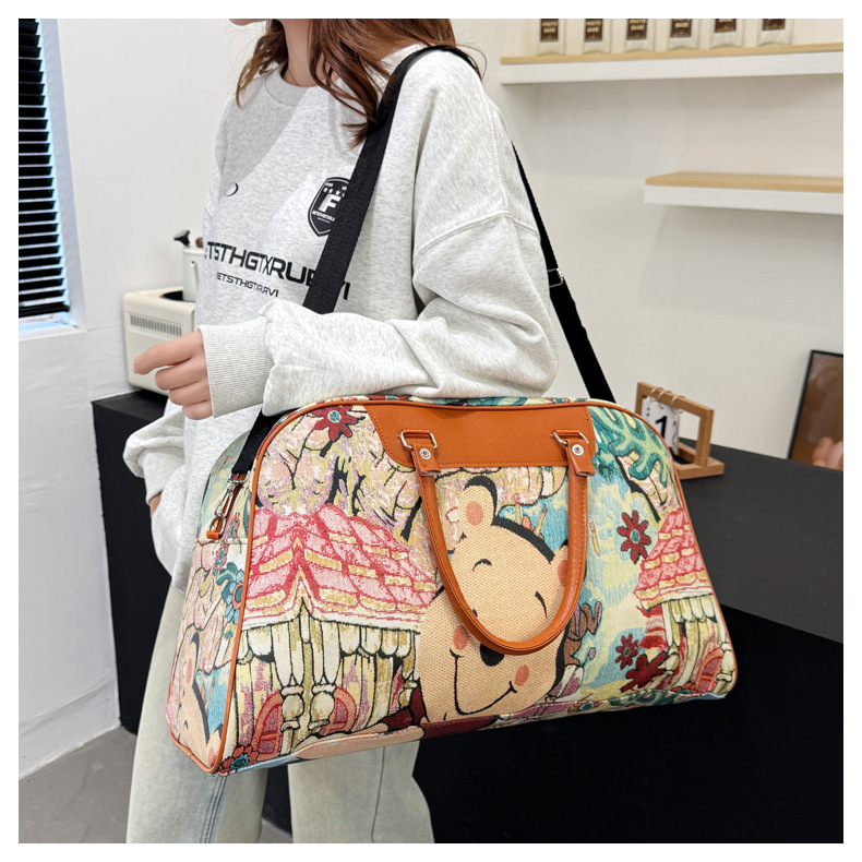 新型ファッションプリント手提げ旅行カバン韓国版大容量キャンバス荷物袋外出短距離搭乗斜め掛けバッグ