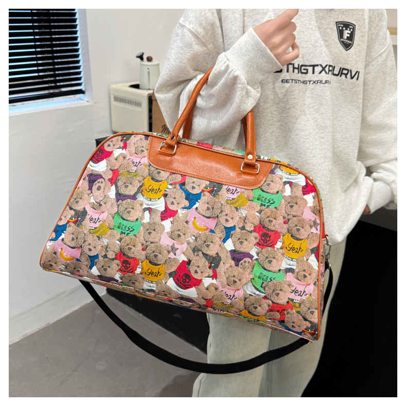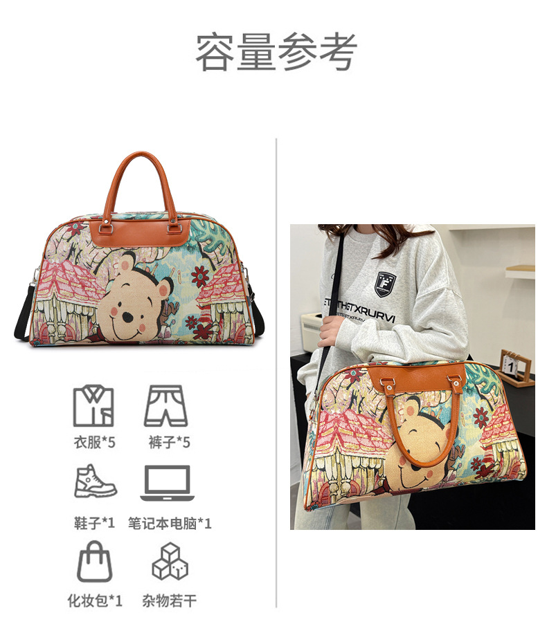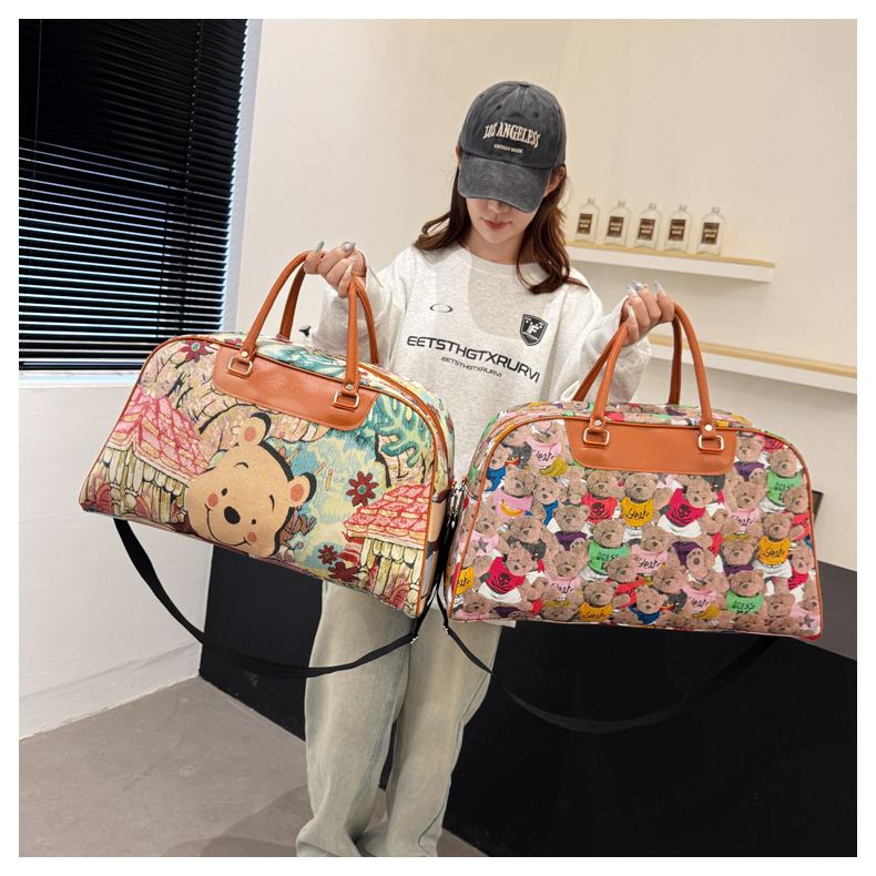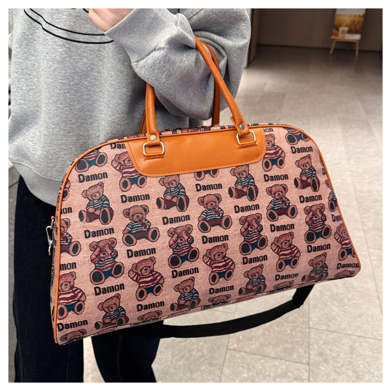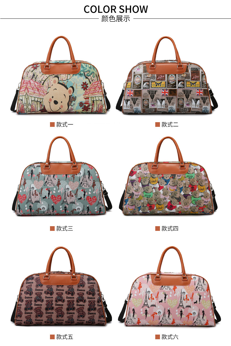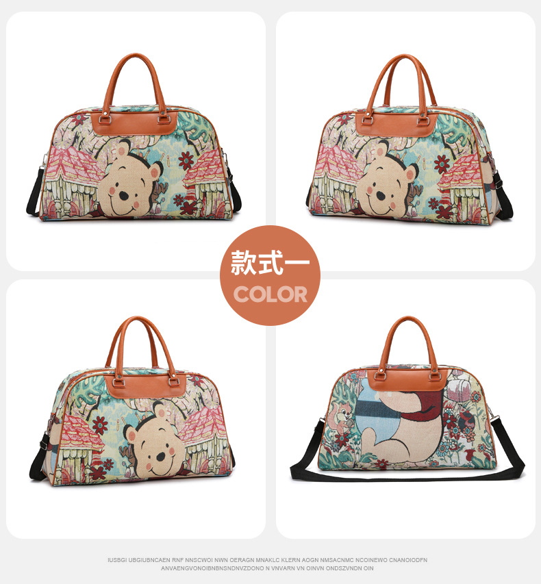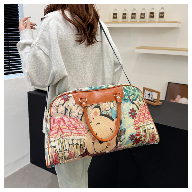 新型ファッションプリント手提げ旅行カバン韓国版大容量キャンバス荷物袋外出短距離搭乗斜め掛けバッグ