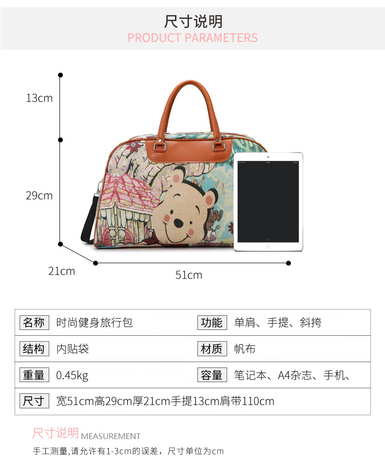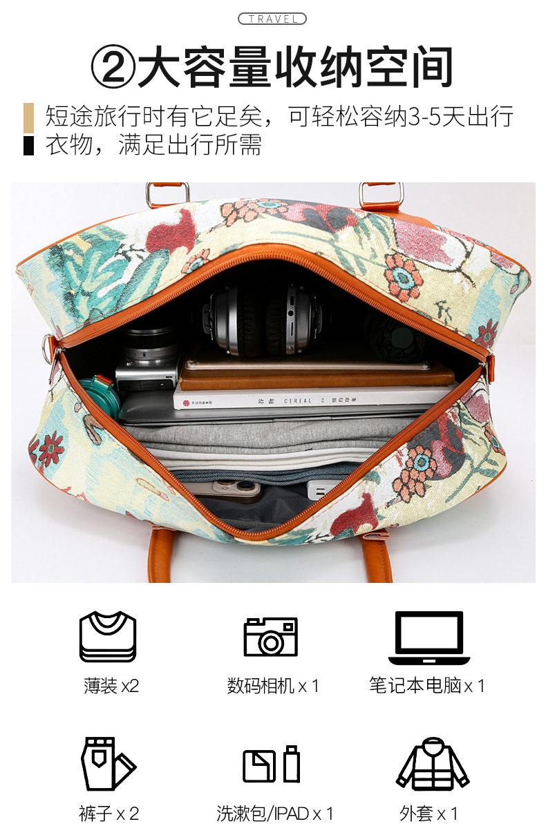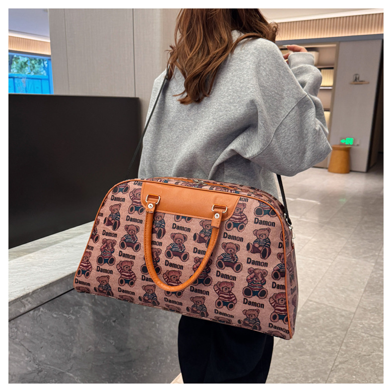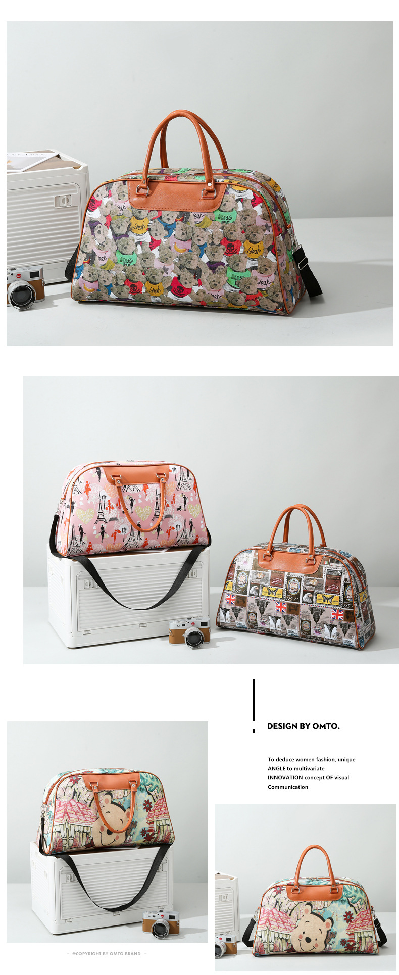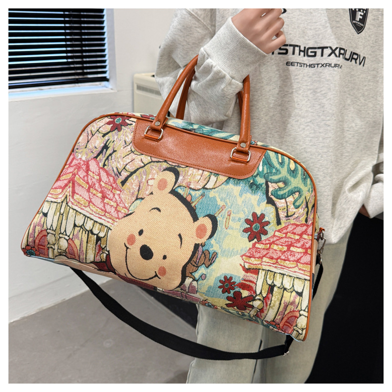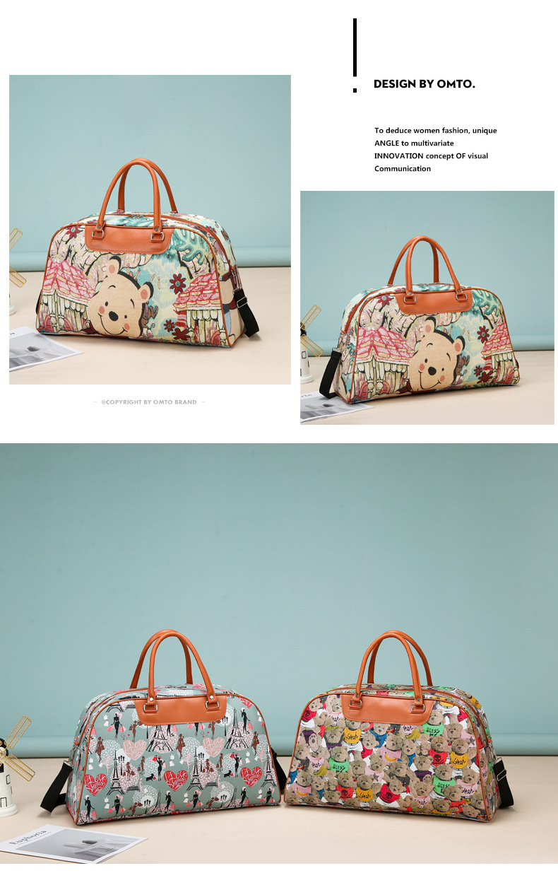 新型ファッションプリント手提げ旅行カバン韓国版大容量キャンバス荷物袋外出短距離搭乗斜め掛けバッグ
