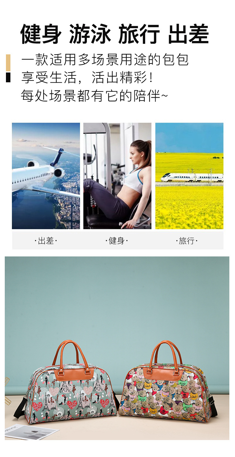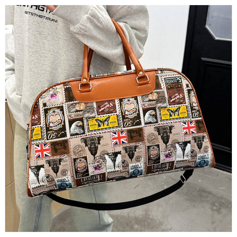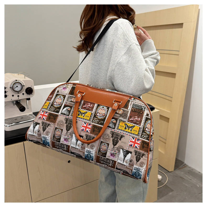 外国貿易プリントファッショントラベルバッグユニセックスバッグ短距離荷物バッグPUテクスチャーソフトレザーフィットネススポーツバッグ