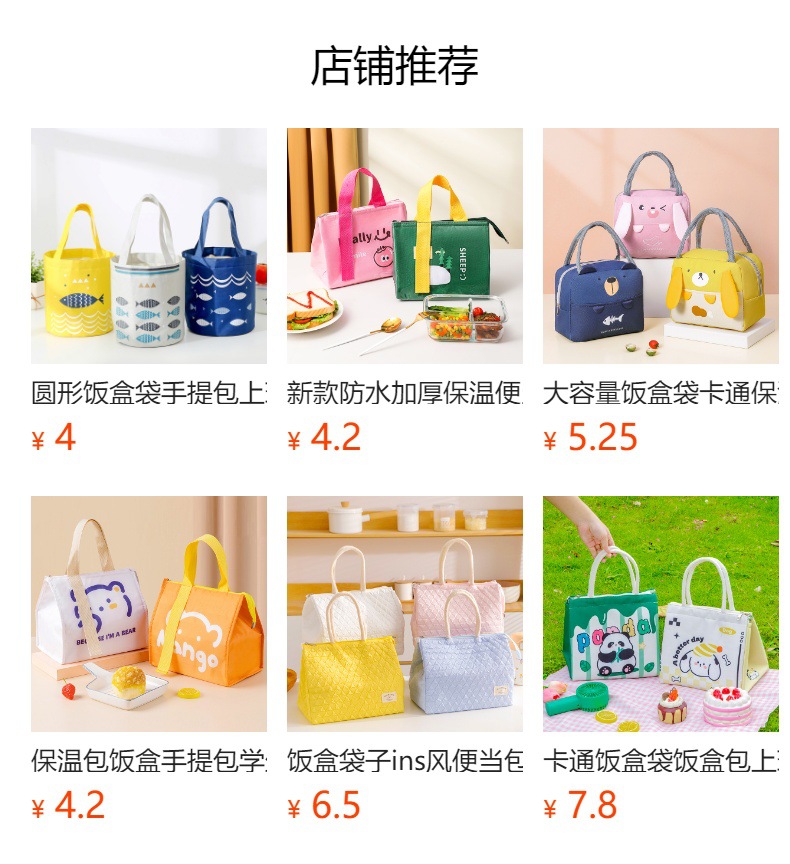 多巴胺卡通上班族带饭保温袋大饭盒袋加厚手提便当包学生高颜值