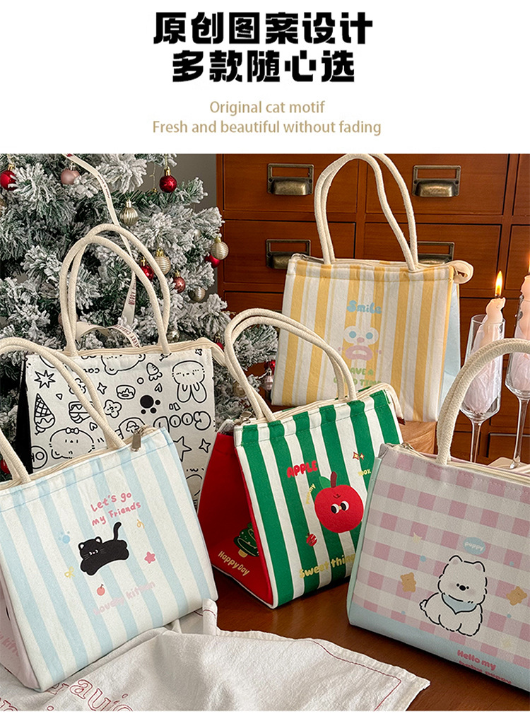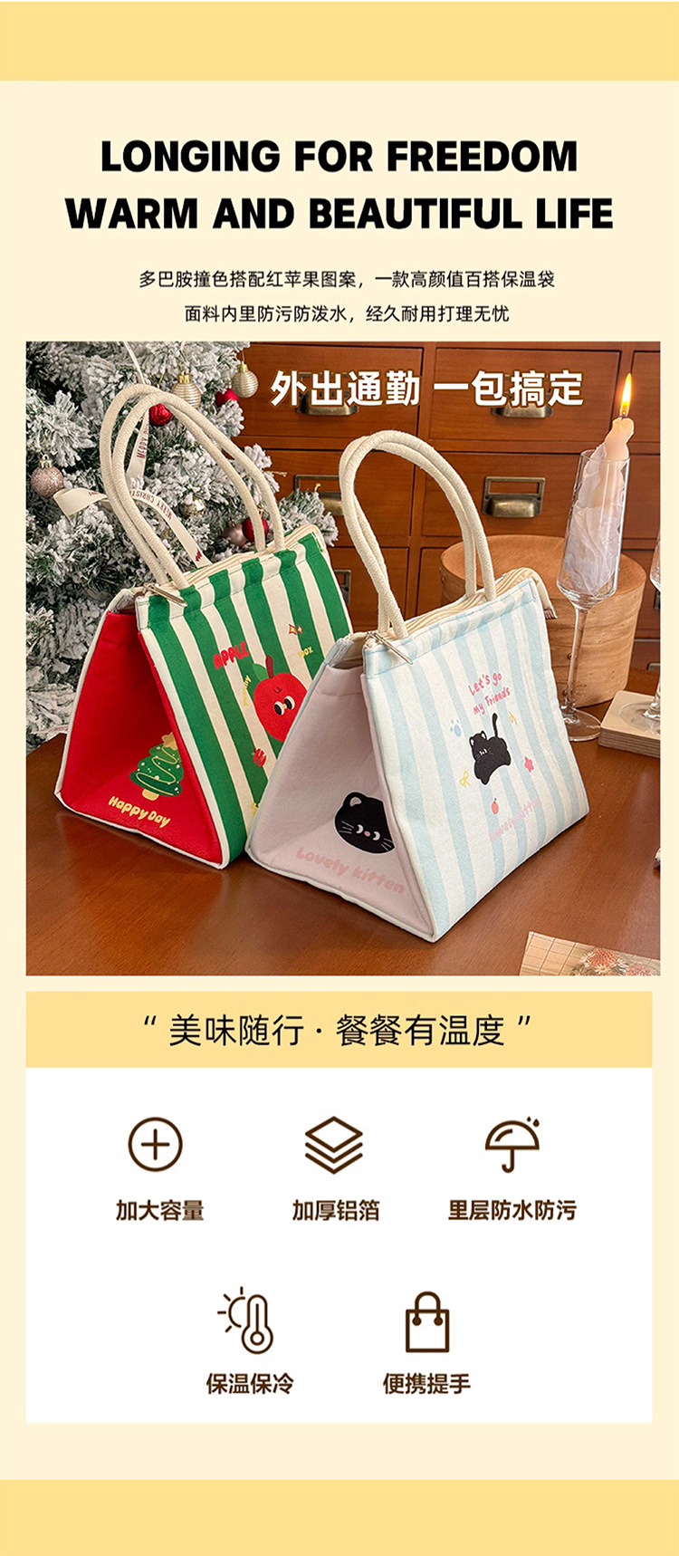 漫画のかわいいランチボックスバッグ、クリスマスをテーマにした断熱バッグ、会社員や学生向けの特別なかわいいクリエイティブハンドバッグ
