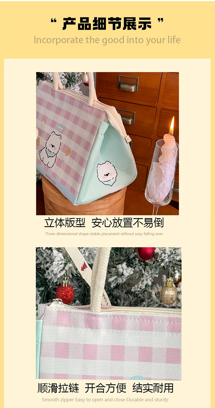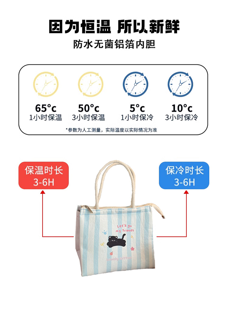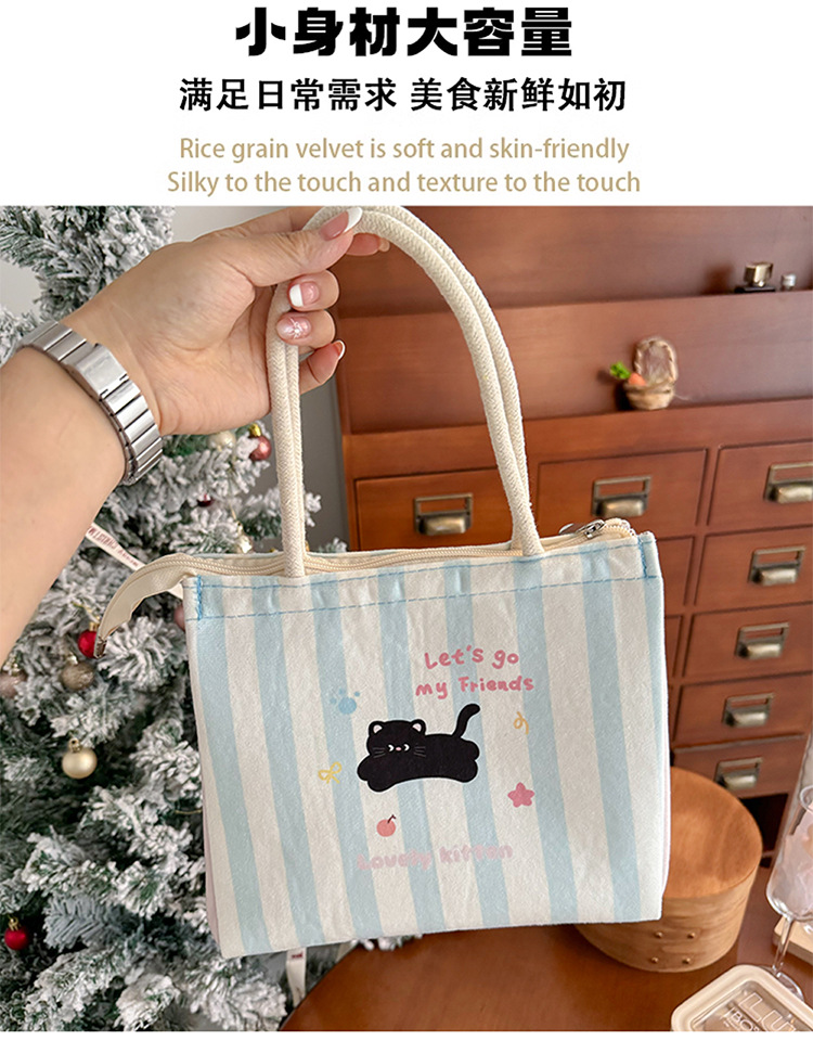 萌趣翻盖保温包便当上班族大容量手提袋保鲜袋餐盒学生饭盒批发