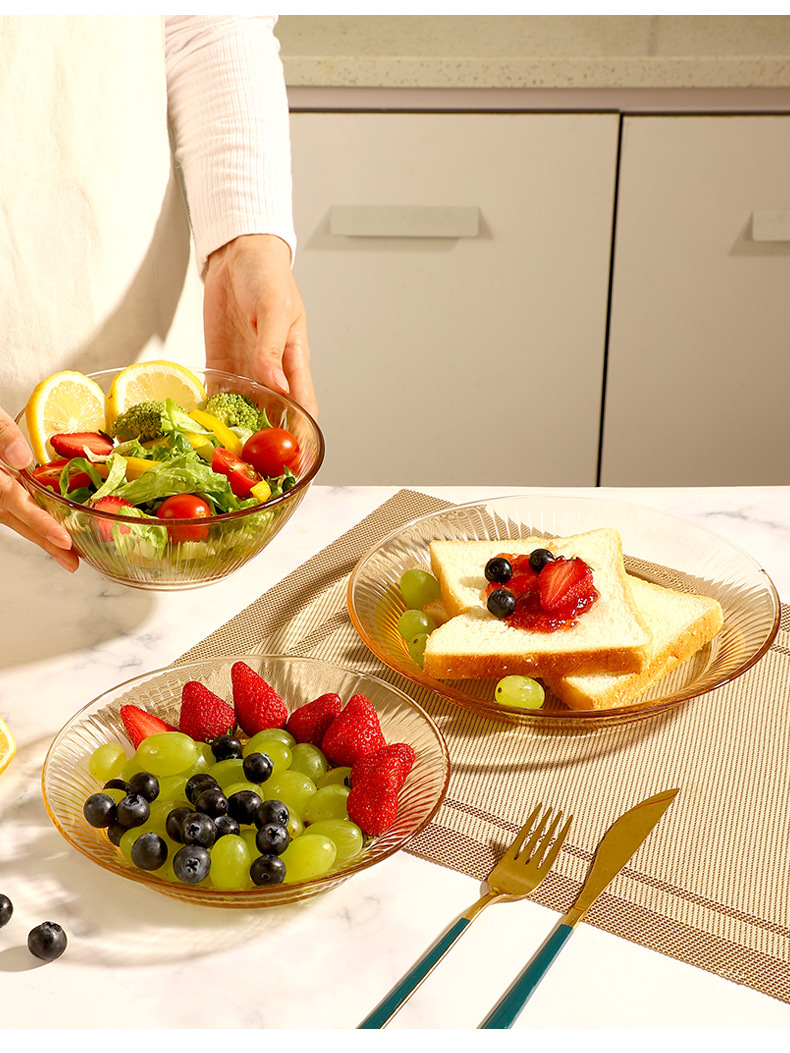 盛歌高ホウ素シリコン色料皿皿果物皿創意ネット赤ガラス皿透明茶碗料理皿セット通販
