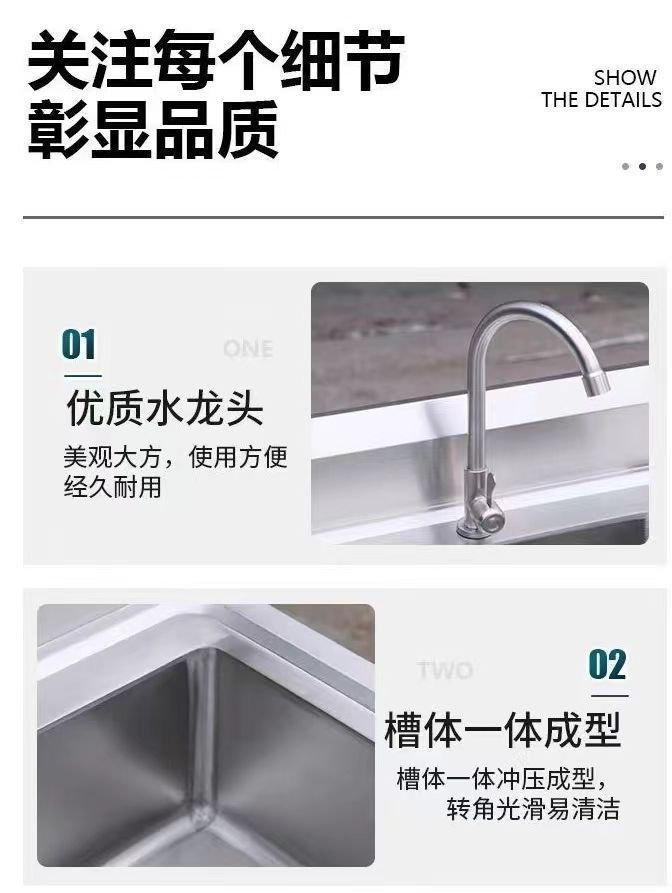 304 極厚ステンレス鋼シンクキッチンシンク商業家庭用一体型キャビネットコンソール