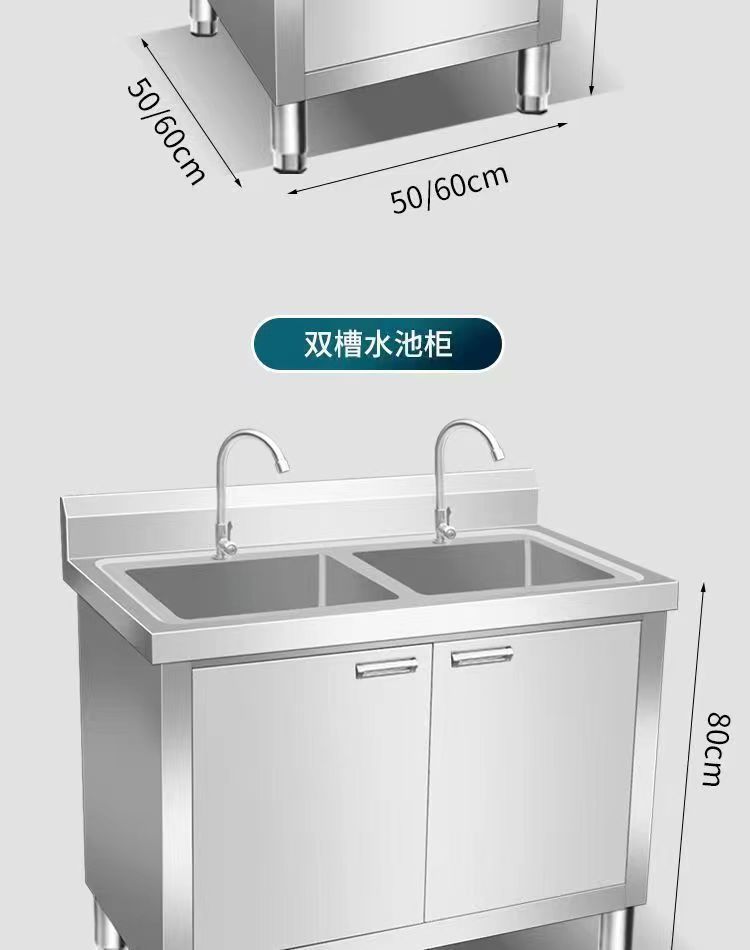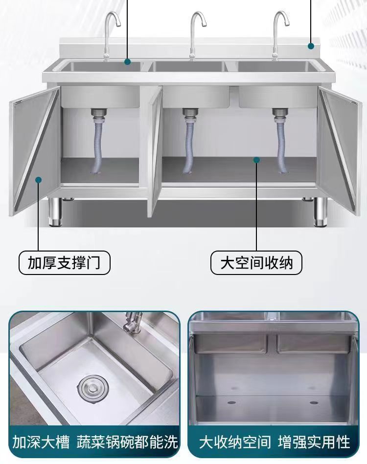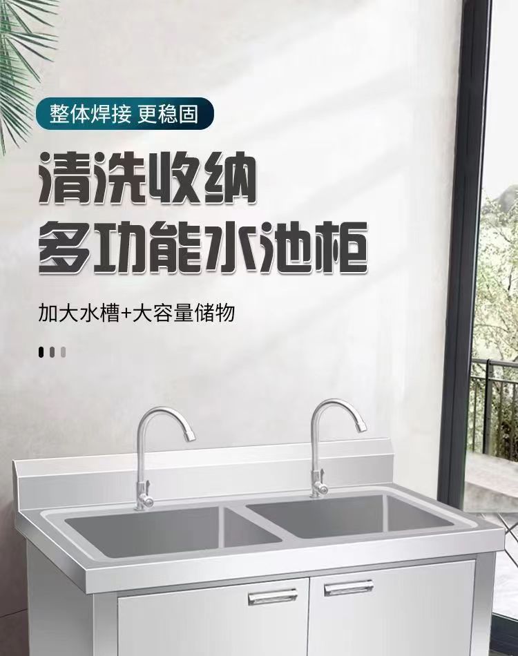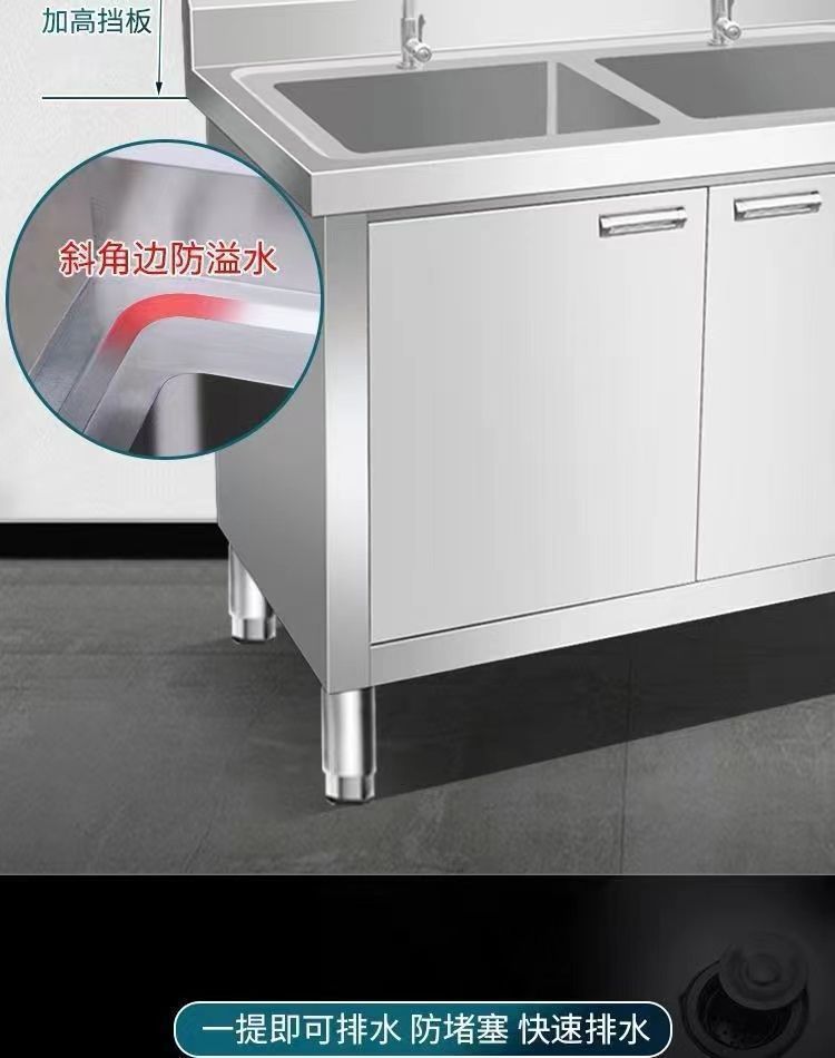 304不锈钢加厚水池柜厨房橱柜洗菜洗碗工作台橱柜DZ碗柜一体柜