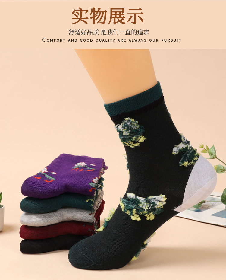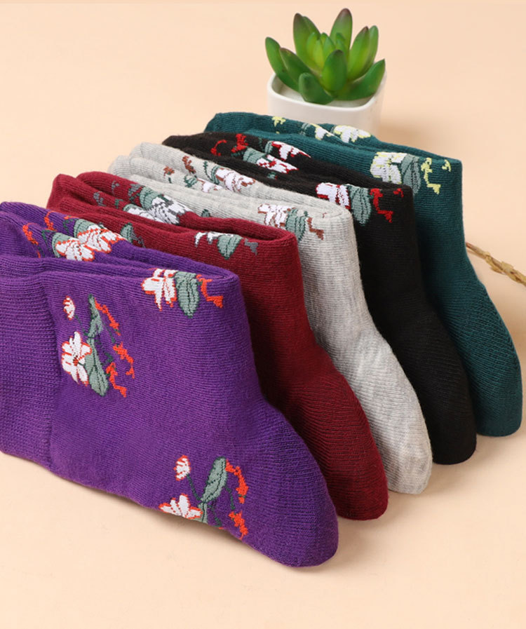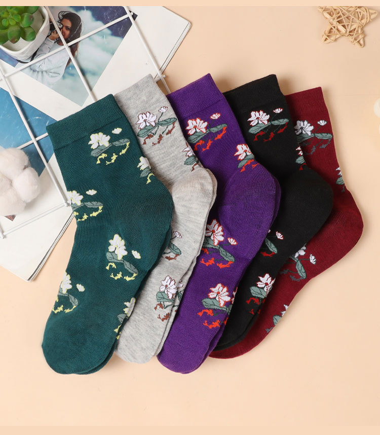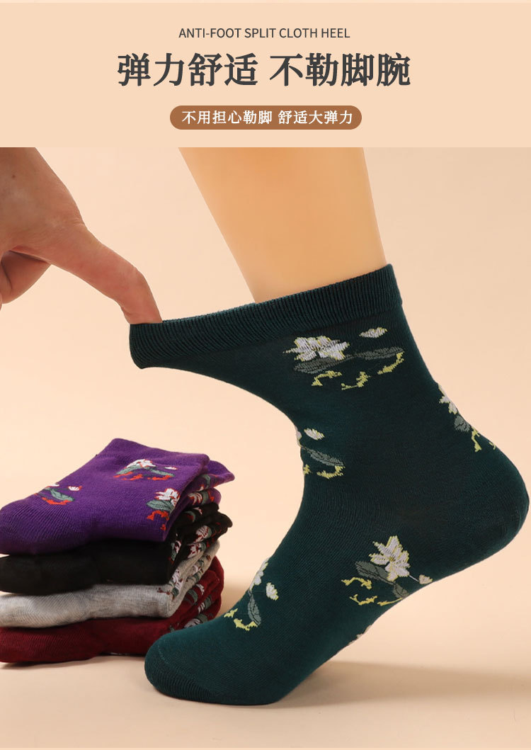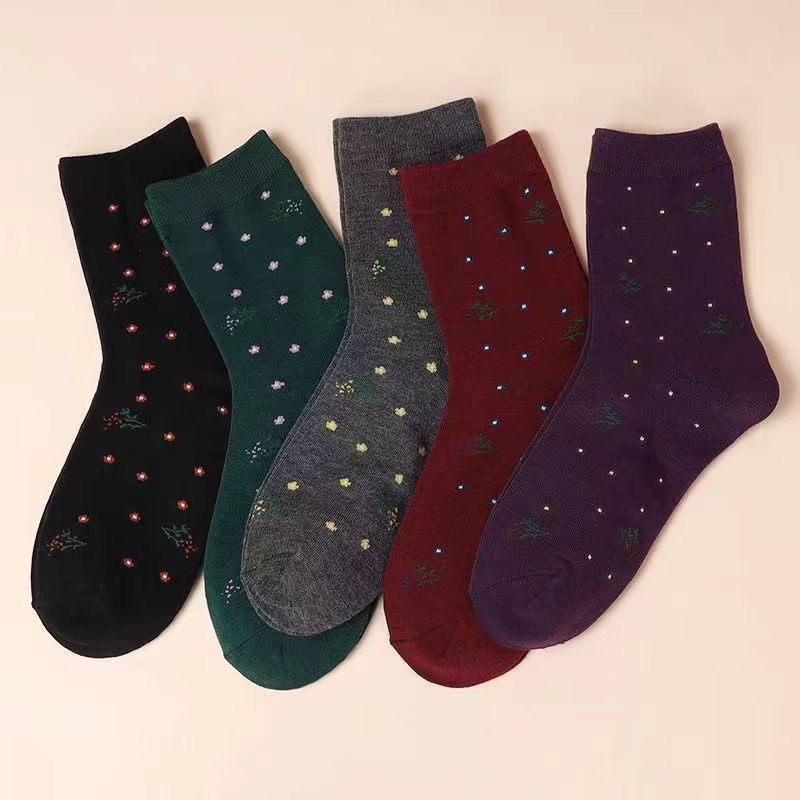 靴下レディースママ靴下防臭春秋四季広口ジャカードミドルストッキング高齢者おばあちゃん女性靴下