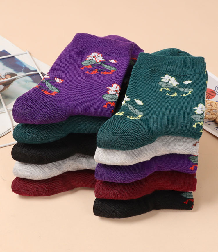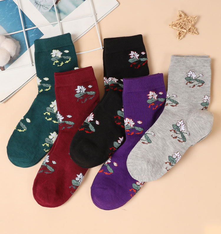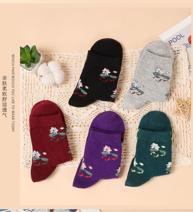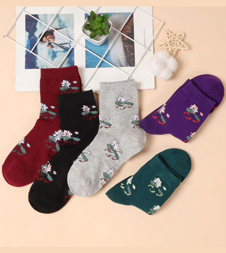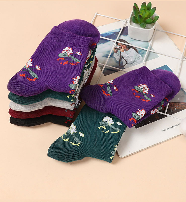 靴下レディースママ靴下防臭春秋四季広口ジャカードミドルストッキング高齢者おばあちゃん女性靴下