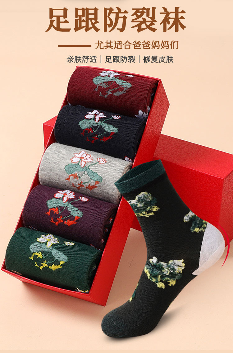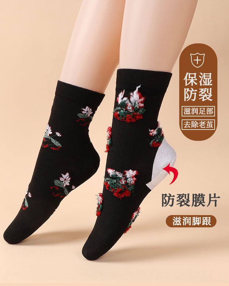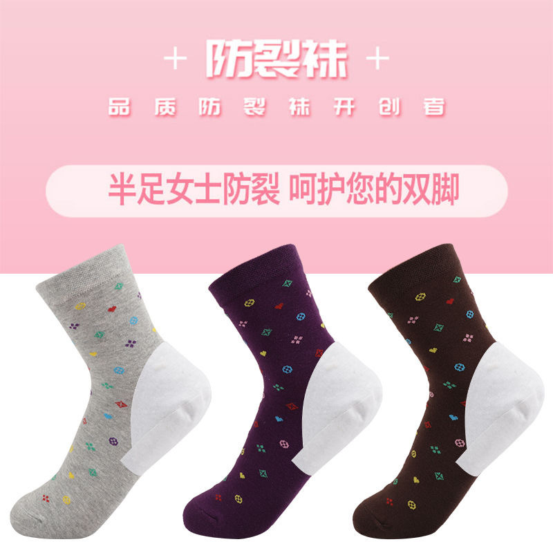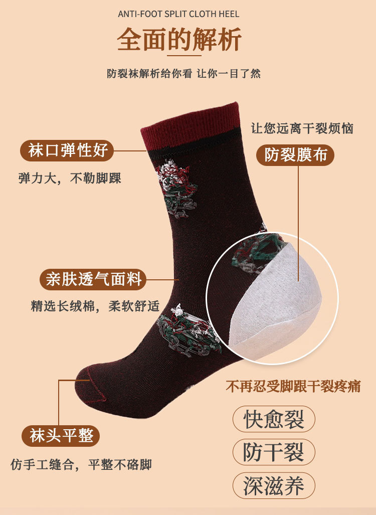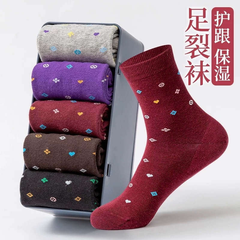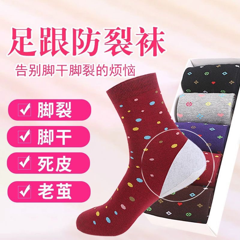 足跟防裂袜子女精梳棉中筒袜秋冬棉袜防脚后跟干裂口保湿女士长袜
