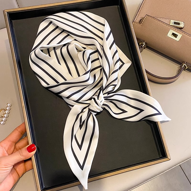 北欧の縞模様の非常にシンプルなシルクタオルの女性の長いストライプの形は洋風の装飾のスカーフの春と秋の長いタイプの薄いマフラーを持っています。