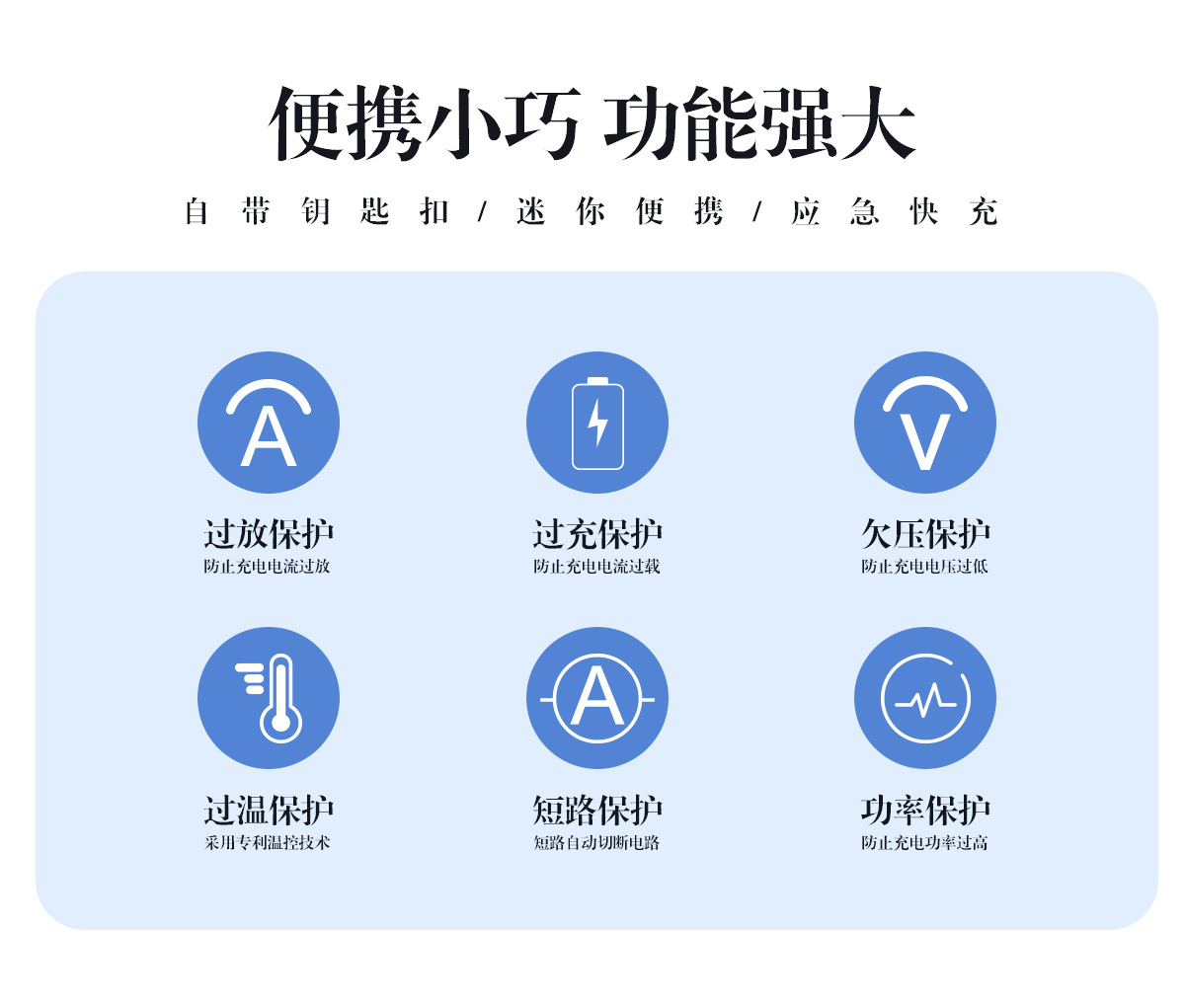 多機能ミニキーホルダー充電宝大容量緊急電源ポータブル伸縮式プラグ充電宝