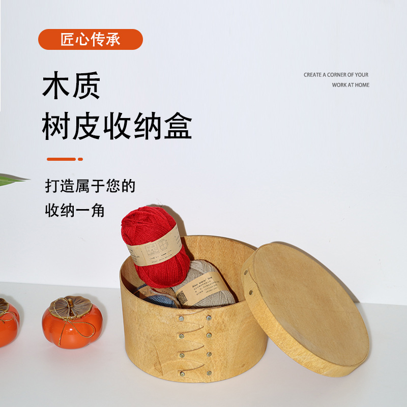 北欧复古手工木制夏克盒中古艺术树皮盒收纳盒家用椭圆形收纳盒