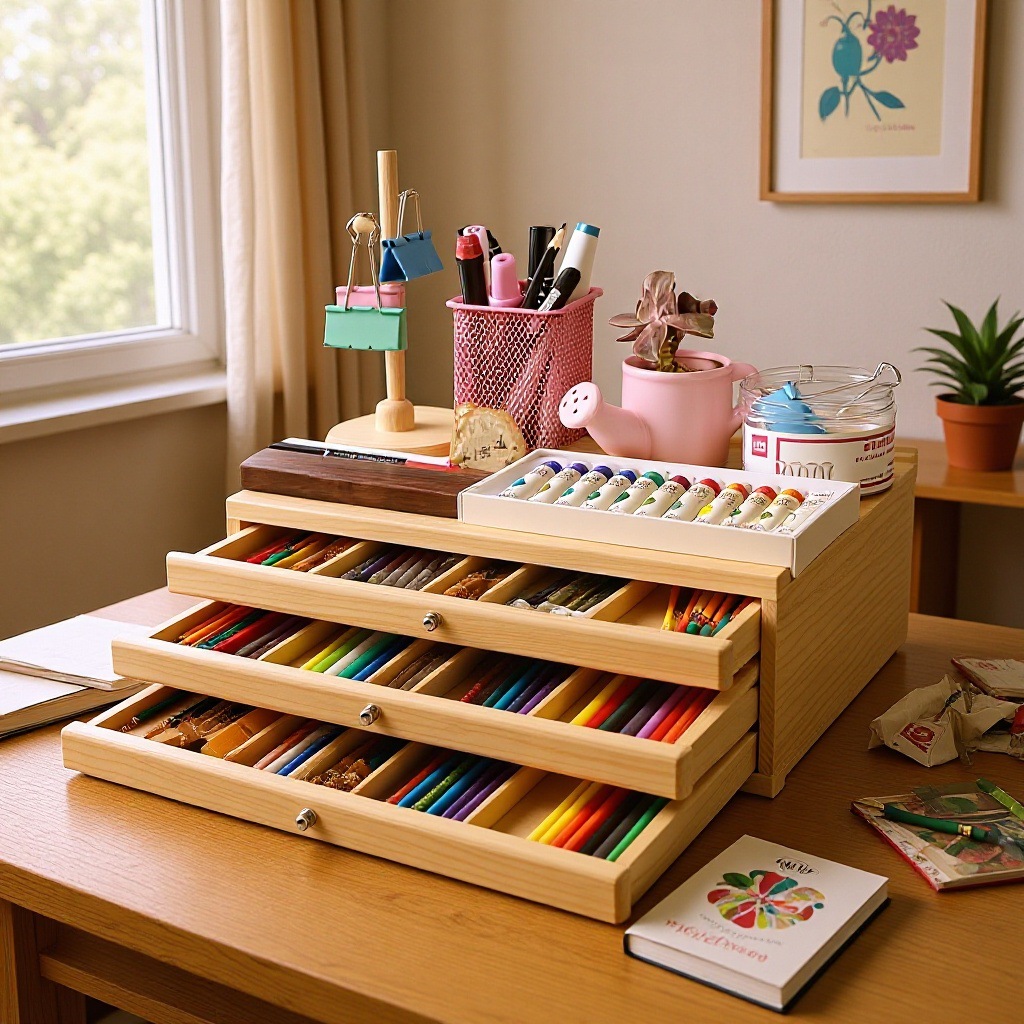 驰远抽屉画箱自然原木色多层马克笔储物箱多功能桌面彩铅笔收纳箱