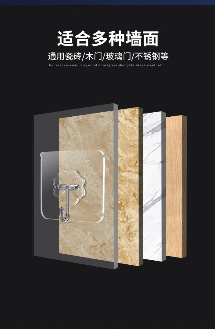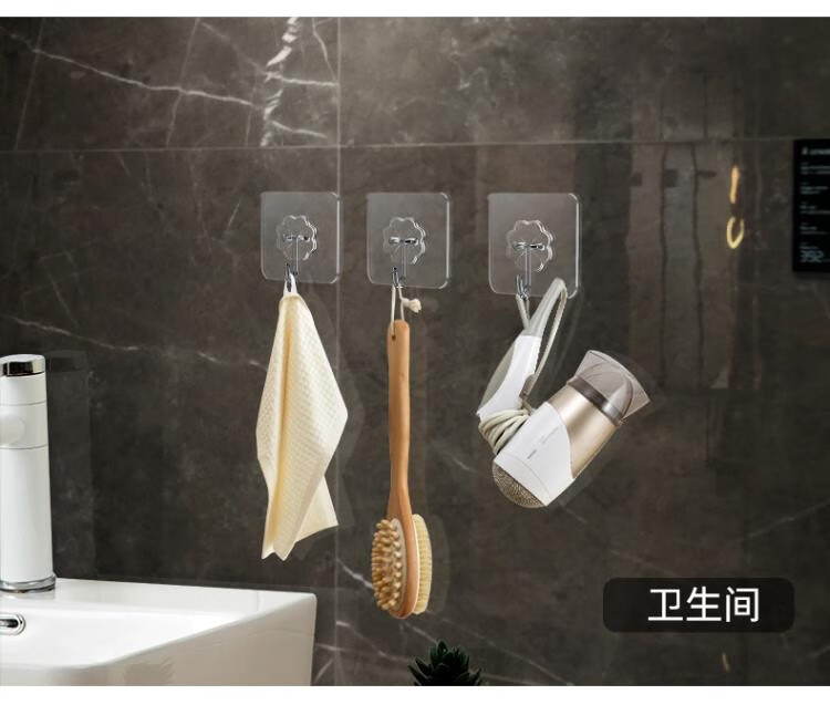 フックの強力な接着剤は壁の透明なフックを貼ります。穴を開けないでフックします。