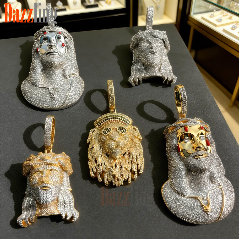 欧美新款嘻哈头像吊坠项链微镶锆石个性饰品高级重工实心满钻现货