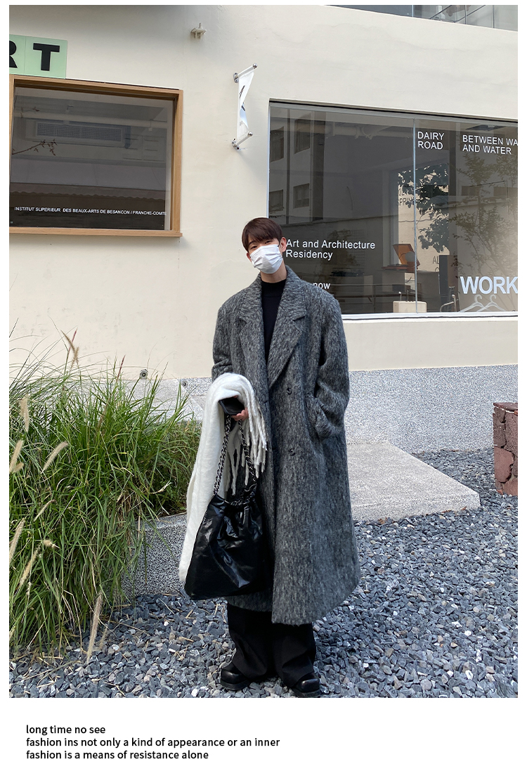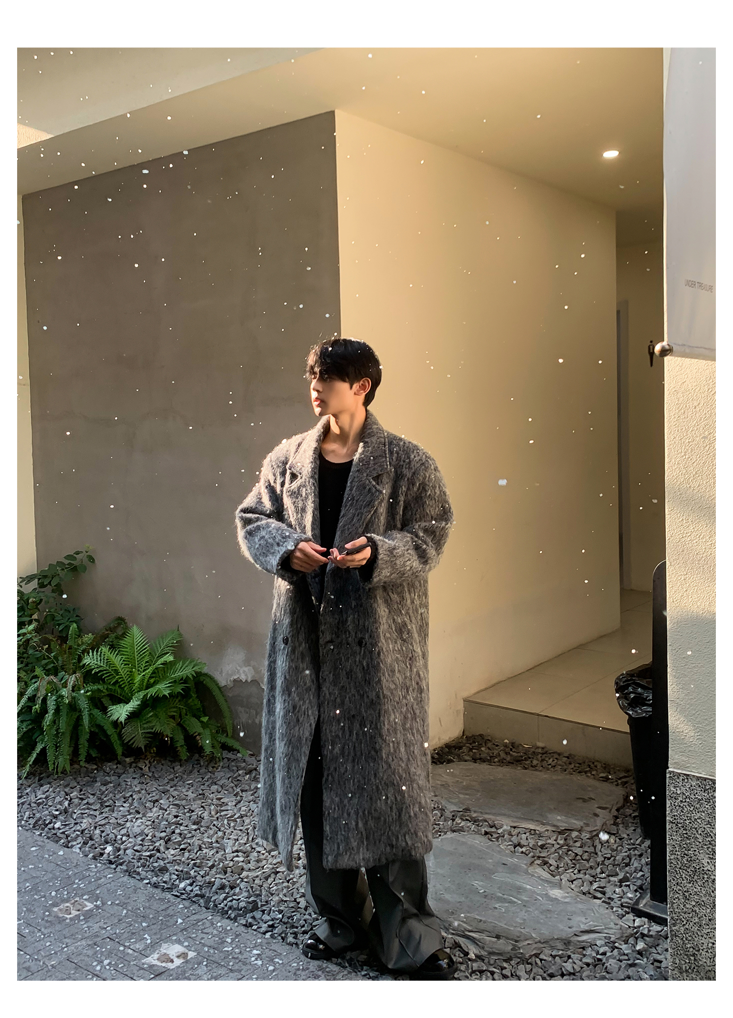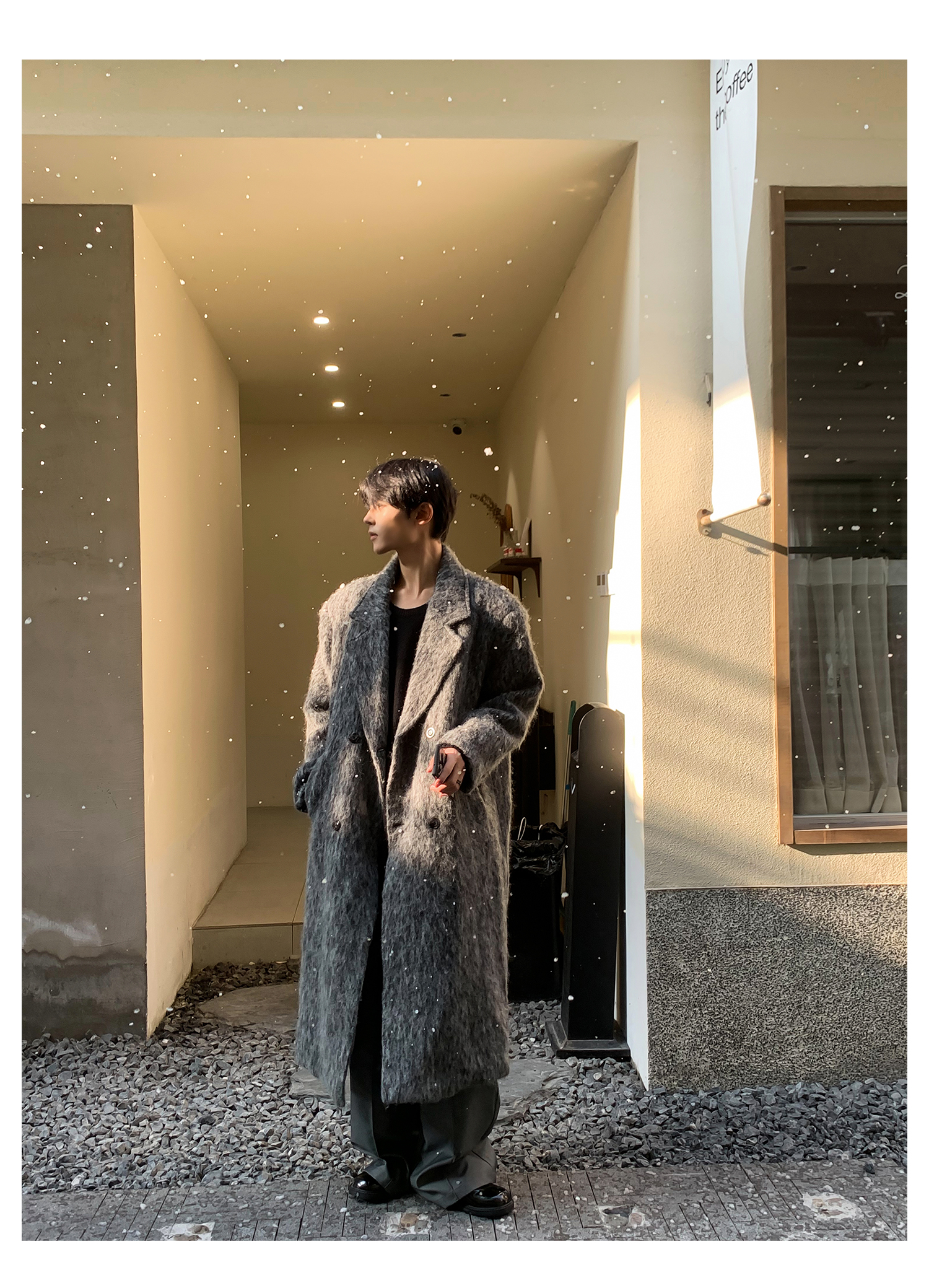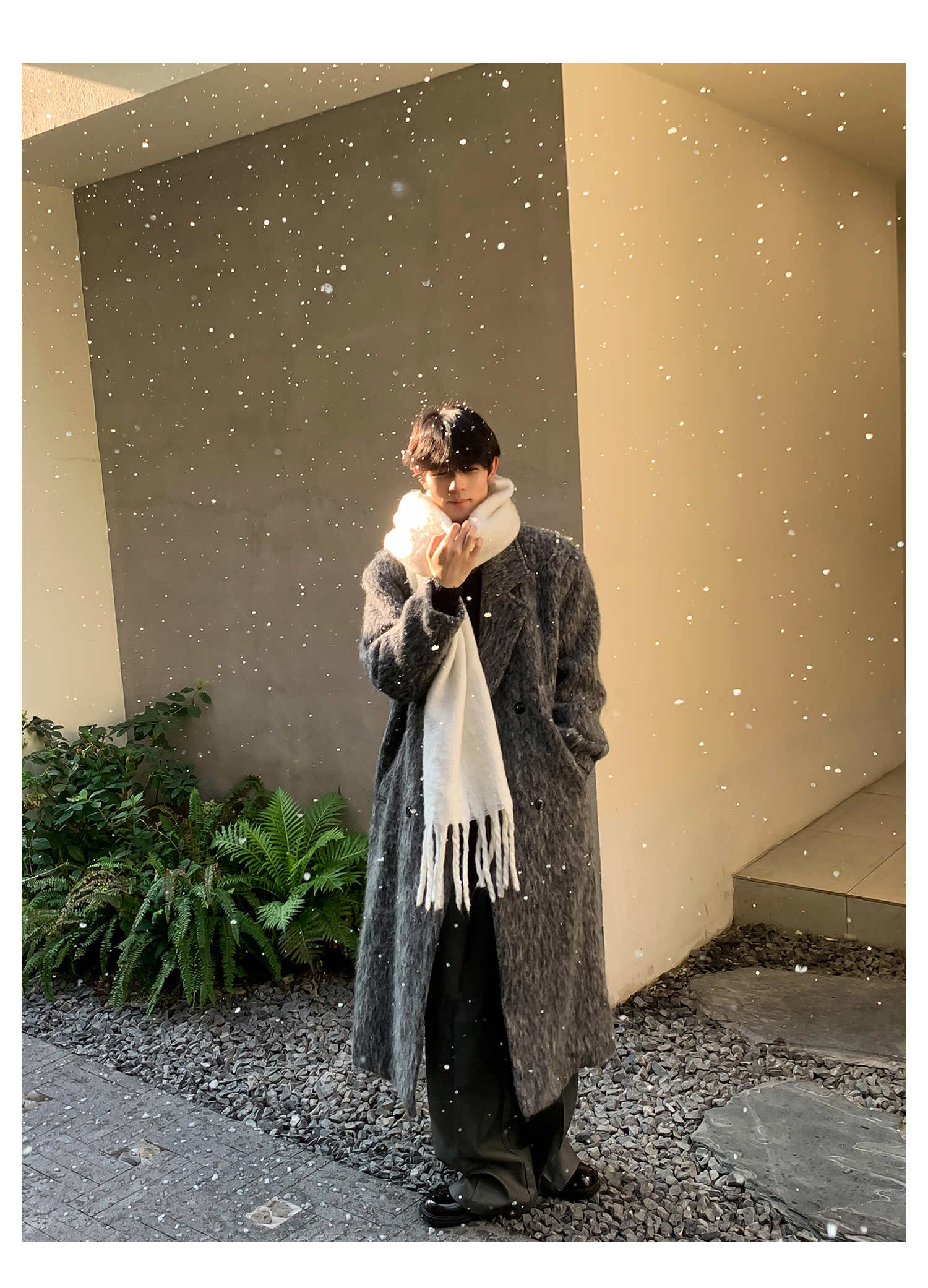 过膝长款双面呢男式大衣2025秋冬青年轻奢双排扣宽松羊毛风衣外套