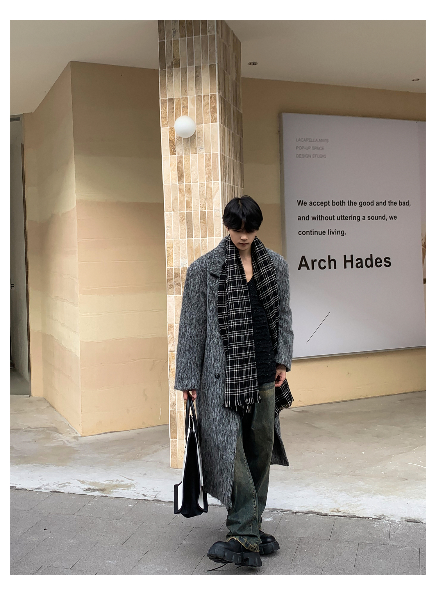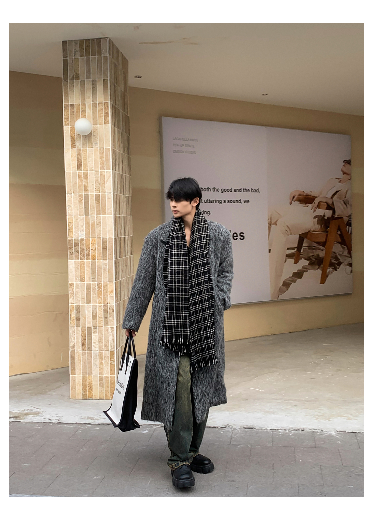 ASCLO秋冬毛呢大衣男加厚中长款过膝高级感呢子大衣外套潮流时尚
