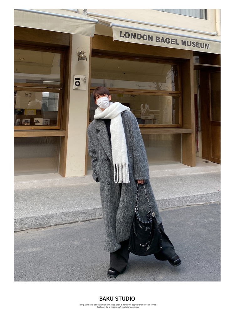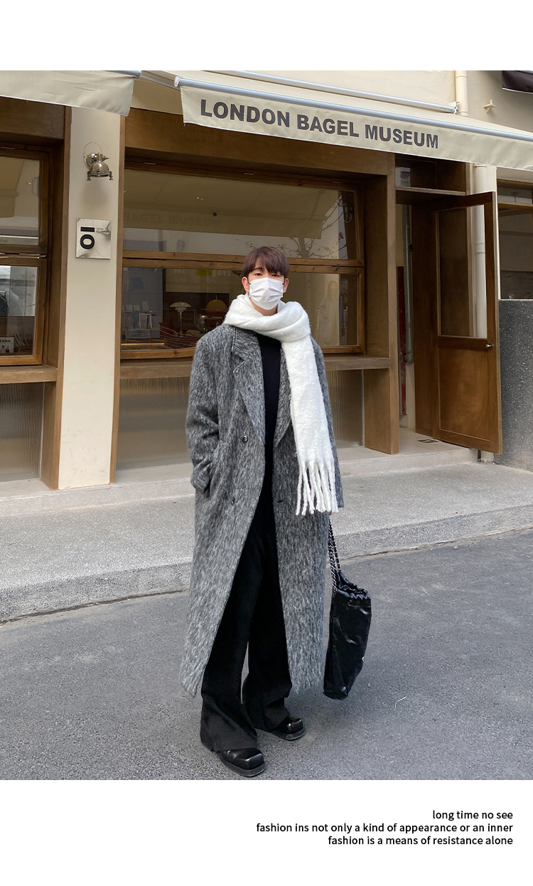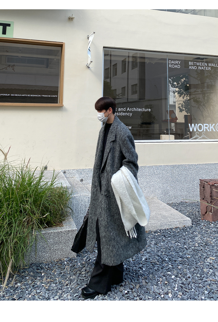 Asclo秋冬厚手の超ロングコート男性韓国版のファッションがゆったりしています。