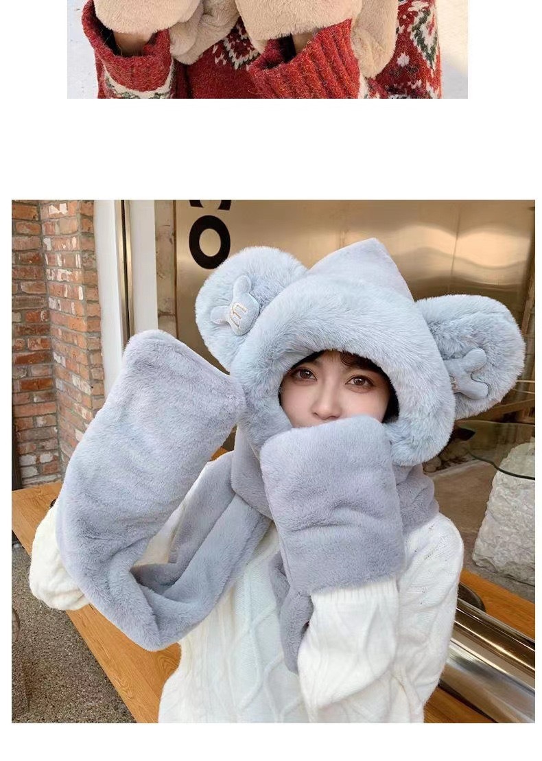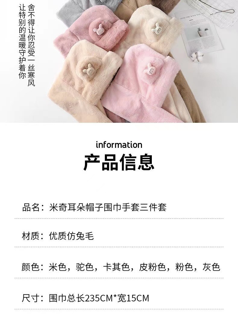 ベアーのぬいぐるみの赤い帽子の女性2024年秋冬の新しいマフラーが一体でかわいい手袋が保温されている3点セット