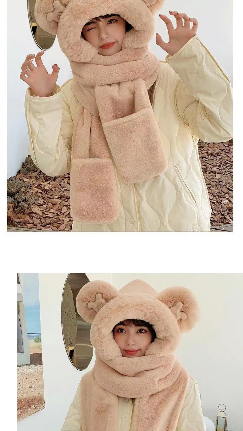 ベアーの耳の帽子の女性の金の2024の新型の秋冬のファッションのマフラーは首の保温の女性を囲んで一体の帽子を厚くします。