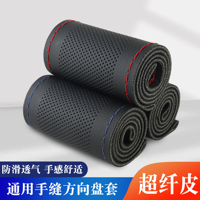 メーカー卸売穴あき手縫いステアリングホイールカバー吸汗性と通気性オールシーズン車のハンドルカバー手縫い