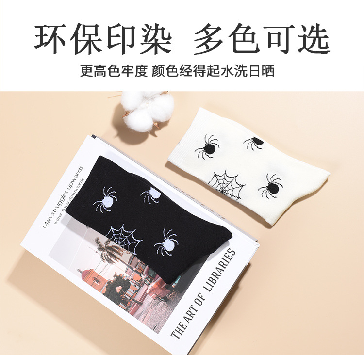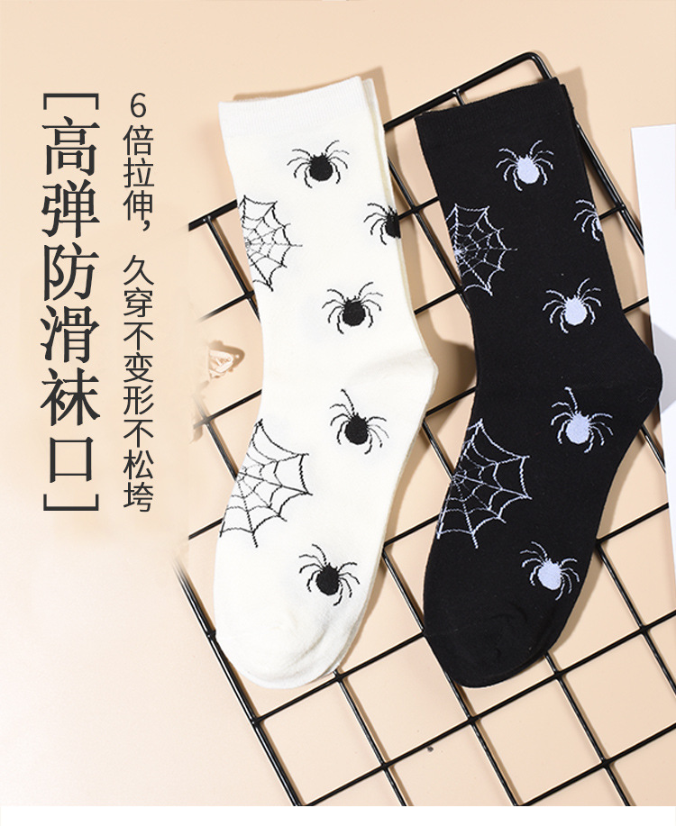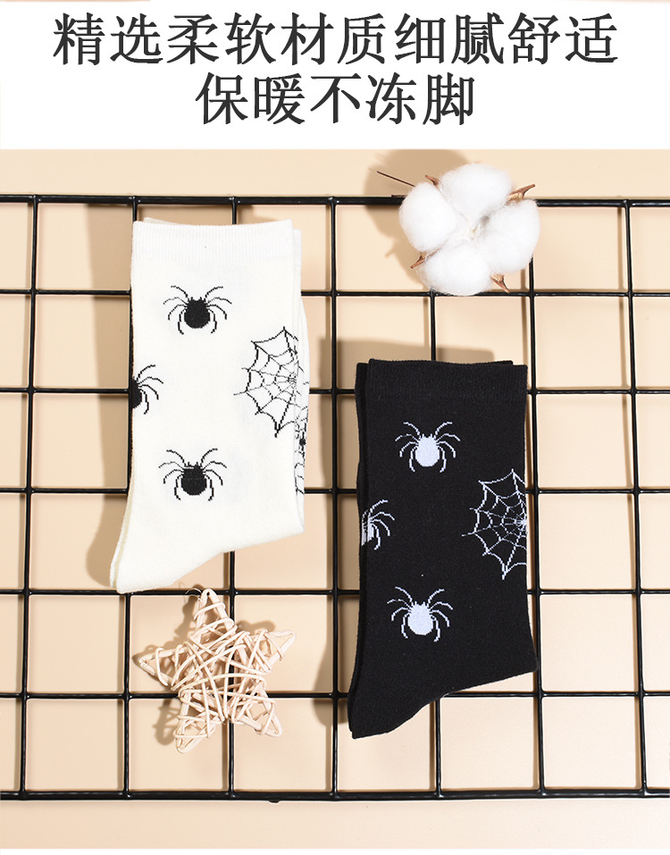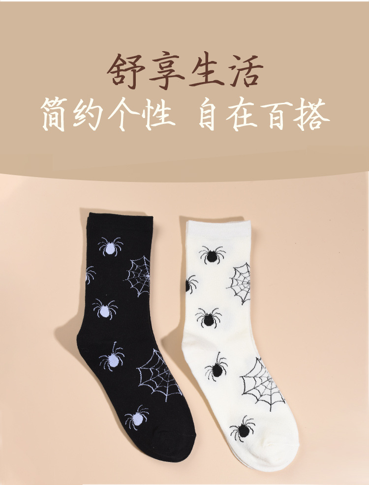 2024年の新型男性の中筒の靴下の秋冬の厚いクモの靴下の黒色の白色の百合の中性の漫画は汗を吸います。