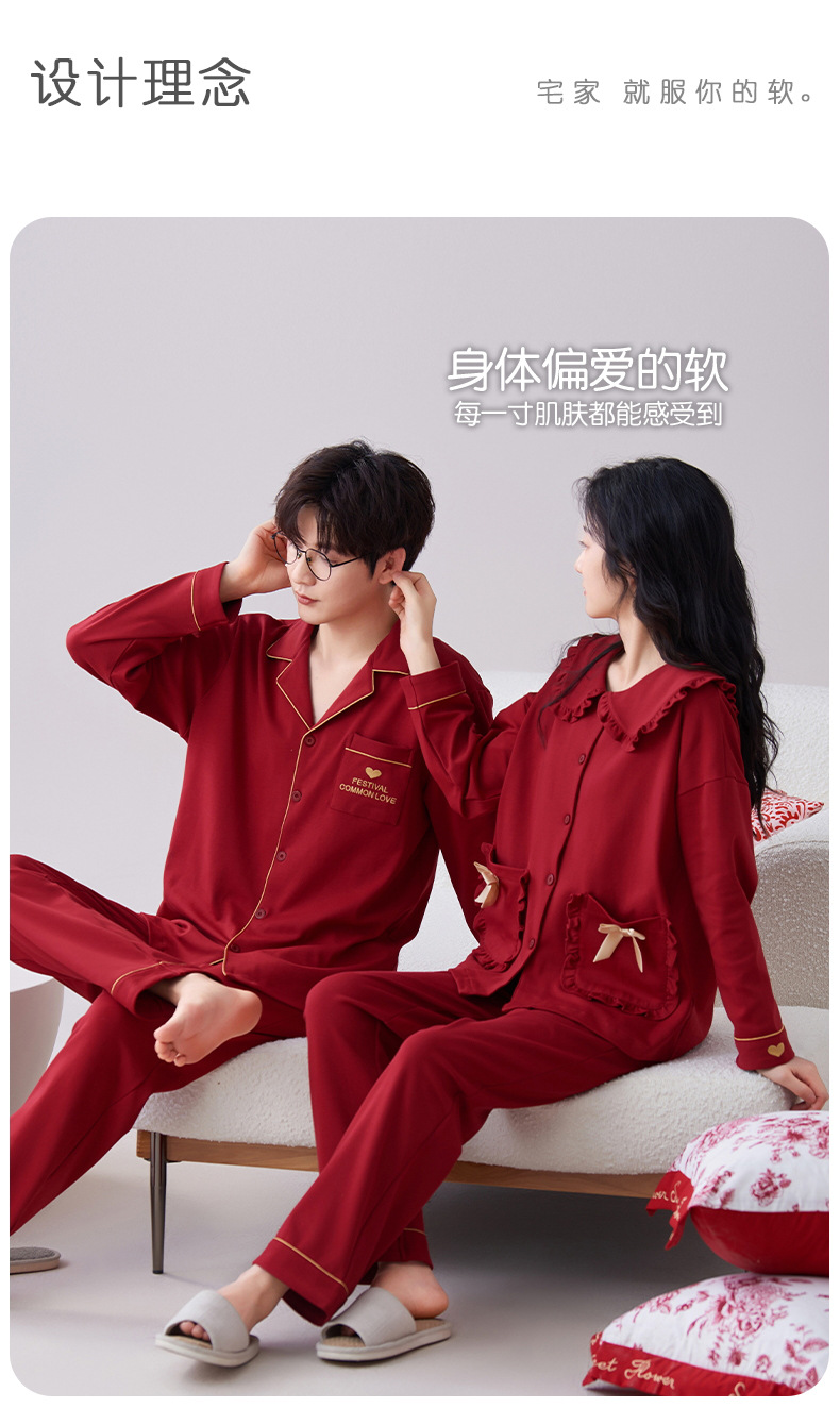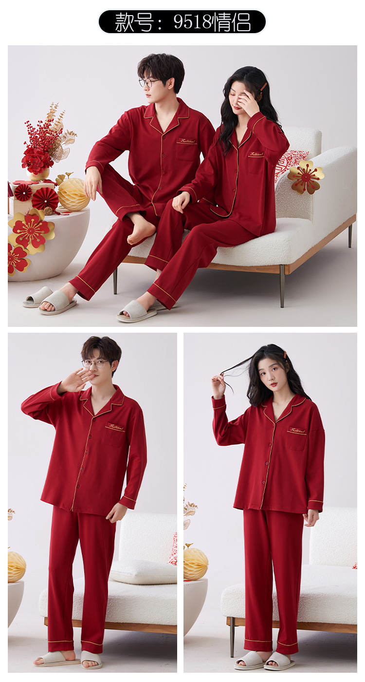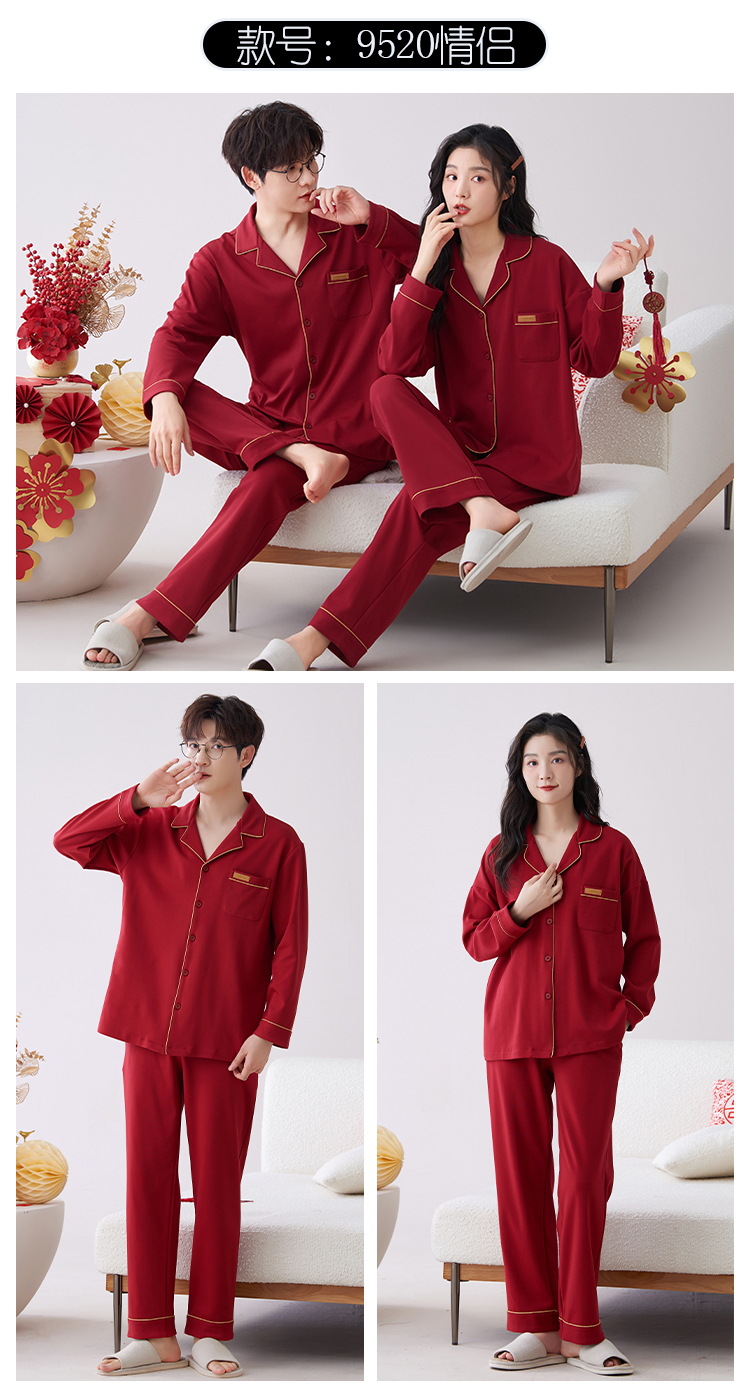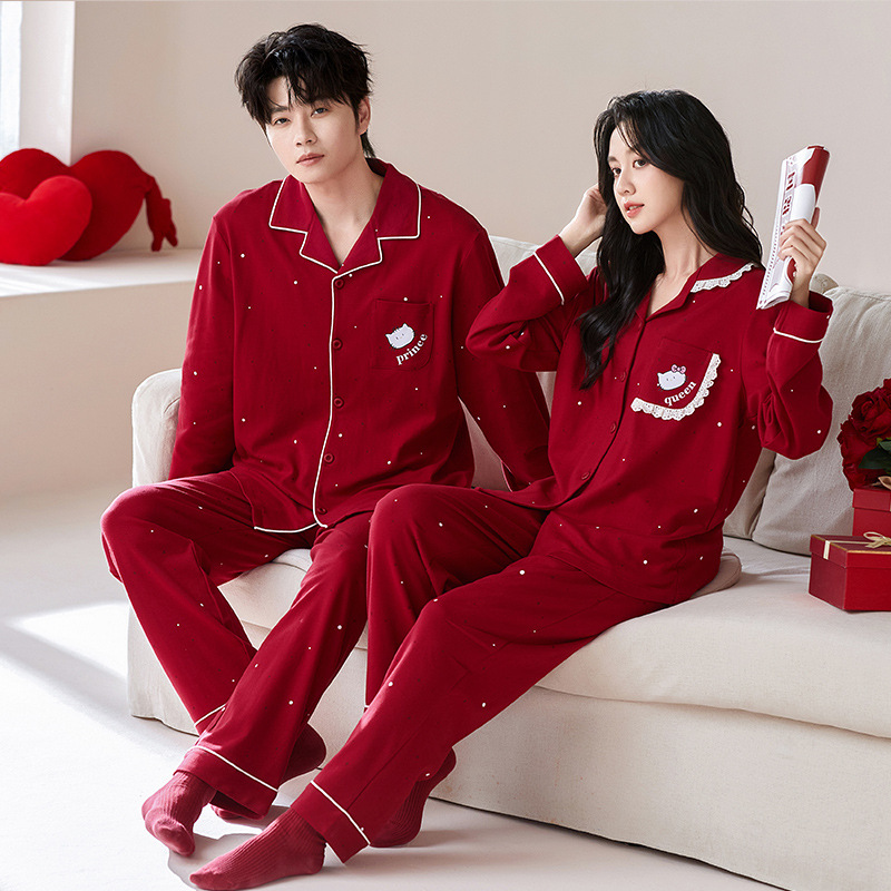 7a抗菌純綿カップルパジャマ結婚新婚本命年赤2024新作セット春秋タイプホームウェア