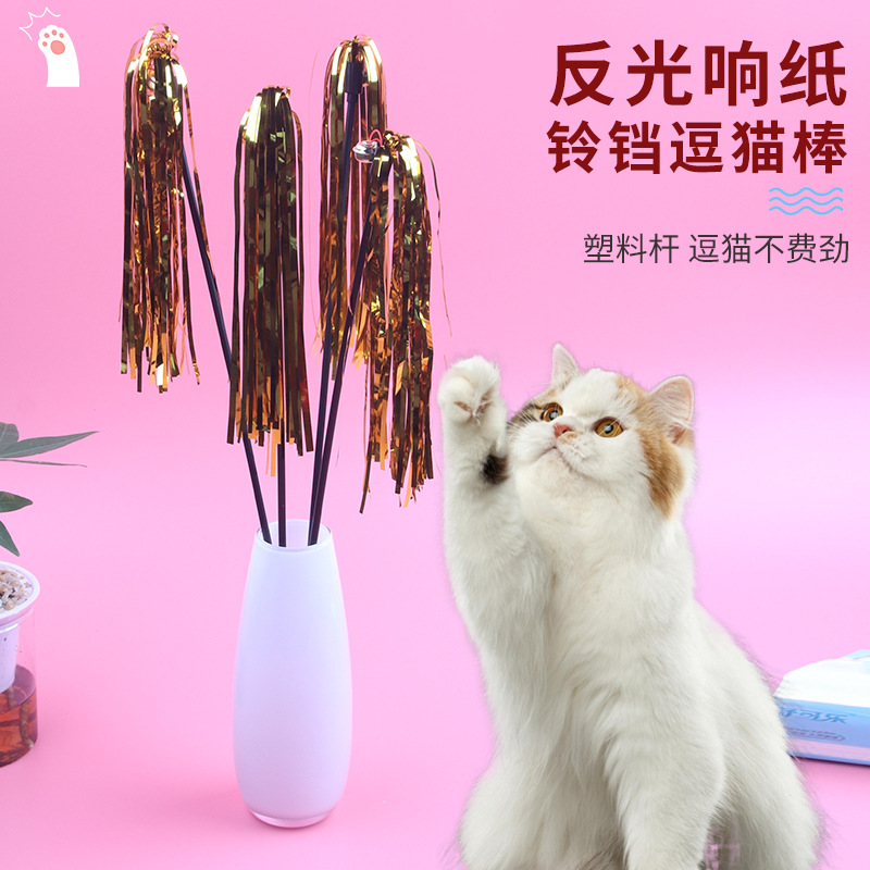越境して起爆した反射の音の紙は猫の棒の長い竿を笑わせて鈴のペットを持っています。