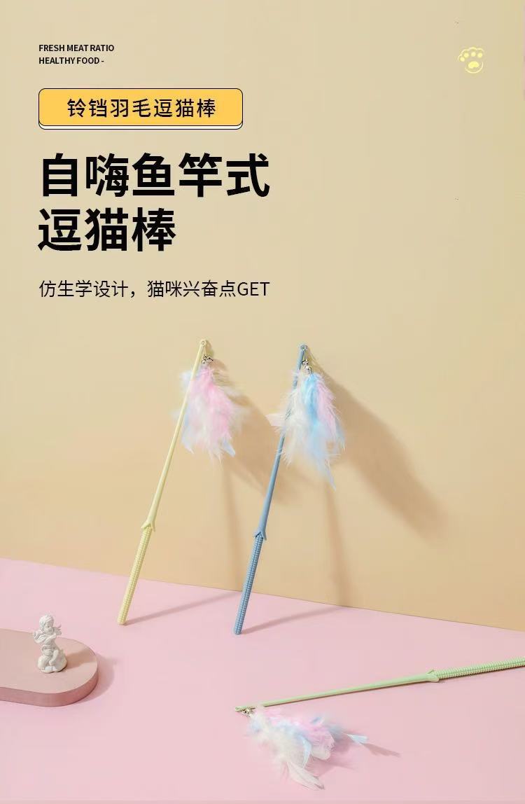 卸売 フェアリーポール カラフルフェザー 猫じゃらし 猫のおもちゃ 噛みつき防止 子猫用ペット用品 小猫用