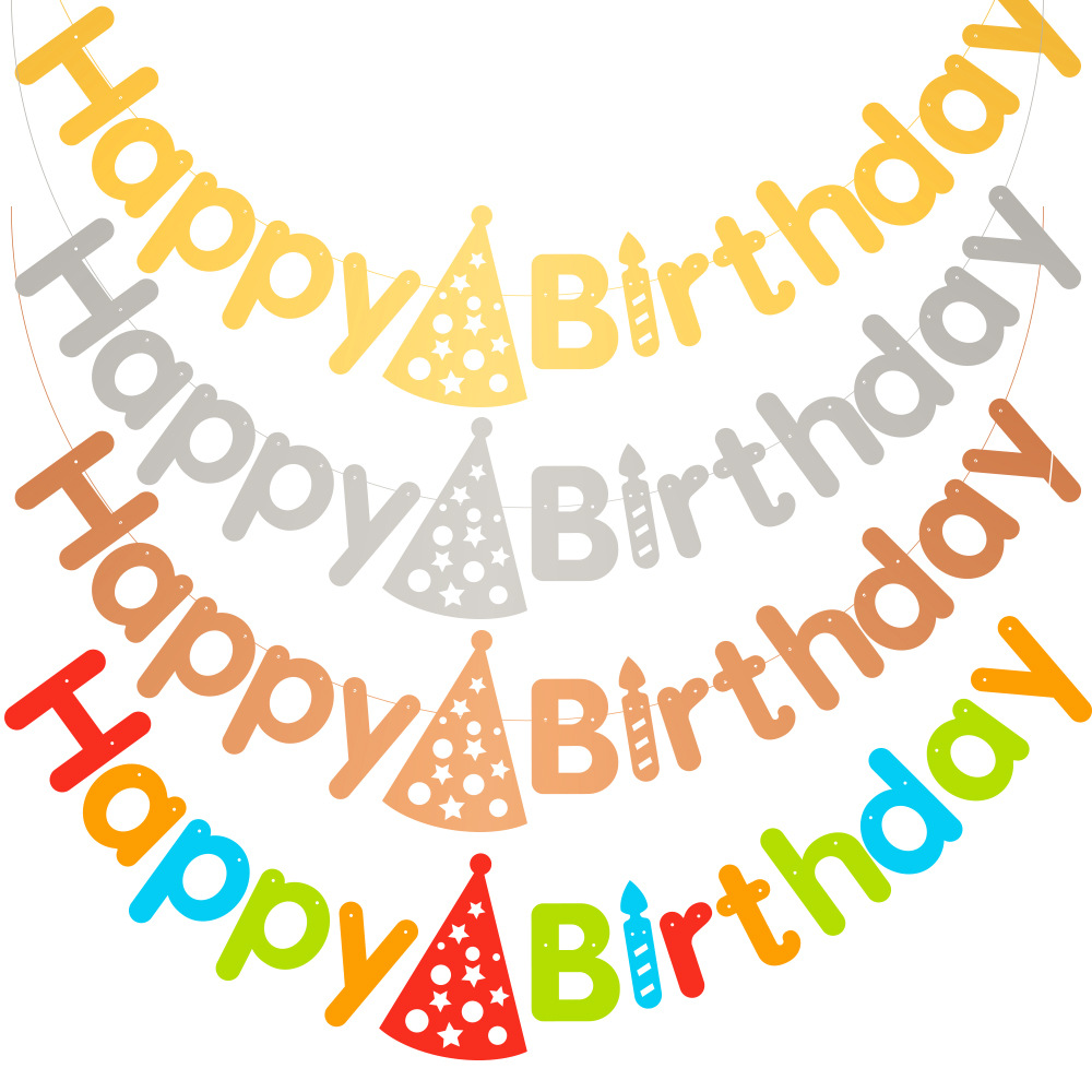 光沢のある金と銀のカラーの帽子の誕生日のアルファベットの旗の誕生日のパーティーの装飾の横断幕の道具のシーンの配置品