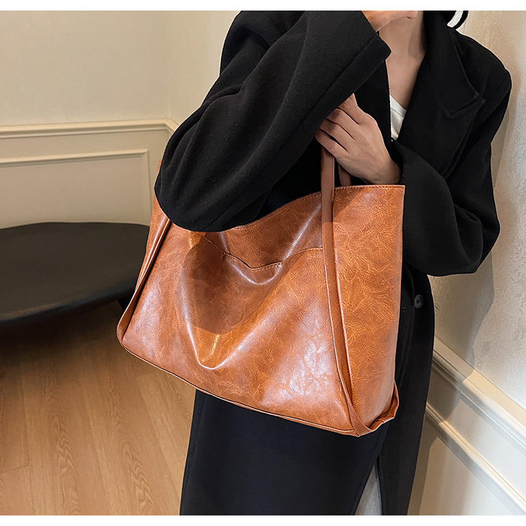 おしゃれなソフトレザーの質感のハンドバッグ、レディースシンプル通勤トートバッグ、大容量レトロカジュアル子母バッグ
