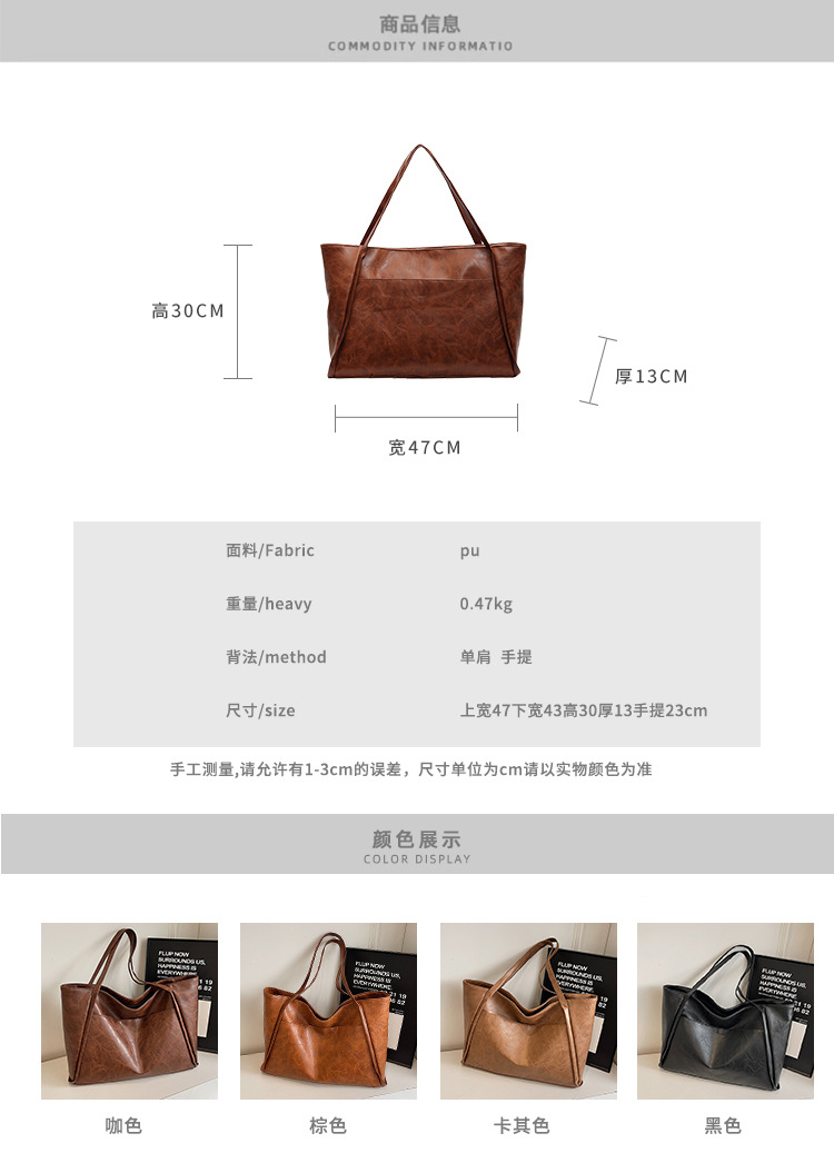 大容量バッグレディース2024新作韓国ファッションソフトレザー片肩脇下バッグ通勤子母トートバッグ