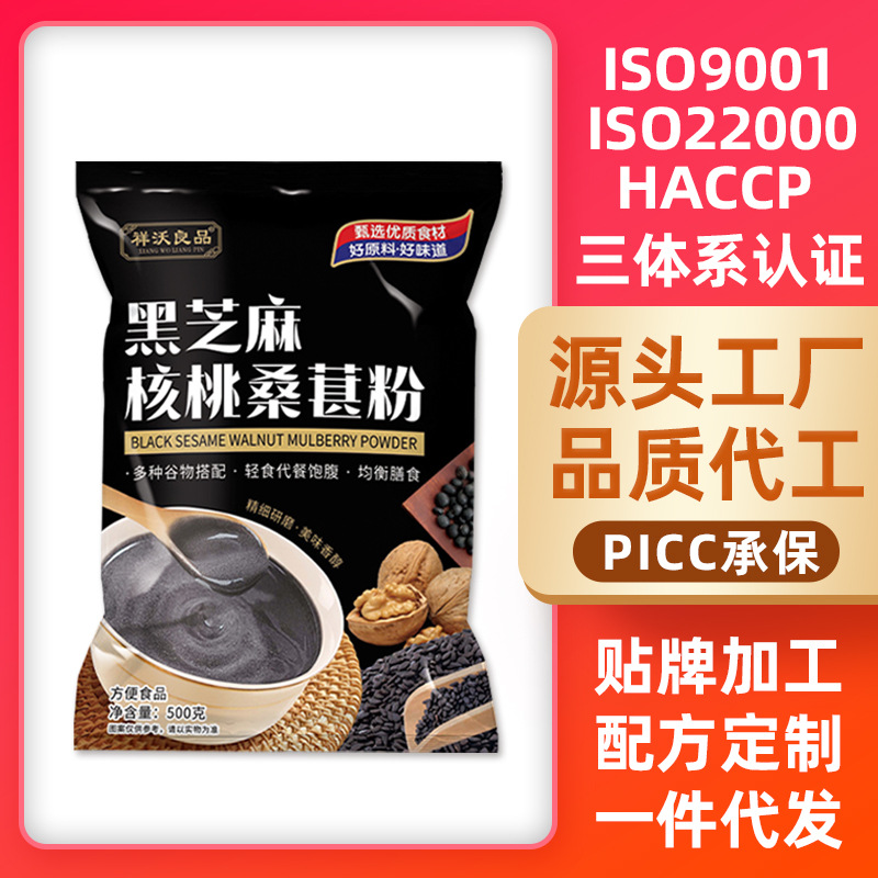 朝食の黒胡麻の粉の袋の中の500gの黒胡麻のクルミの桑の実の粉は直接五穀の代の食事の粉の卸売りの代を抽出します。