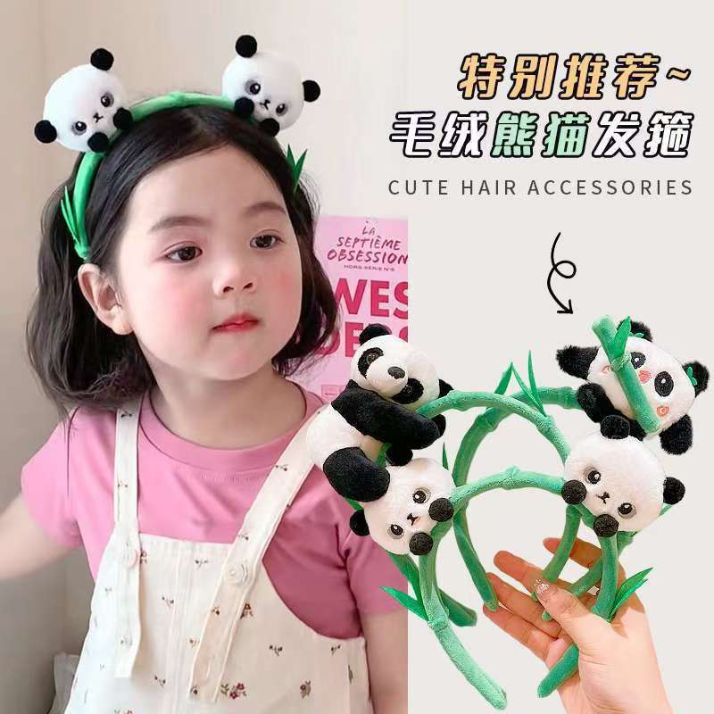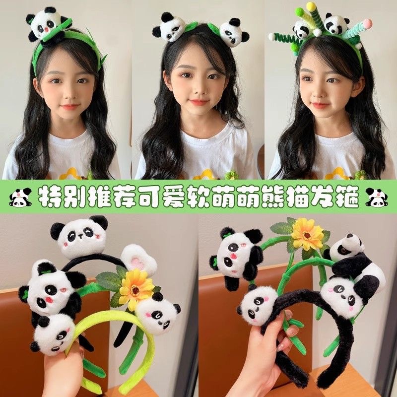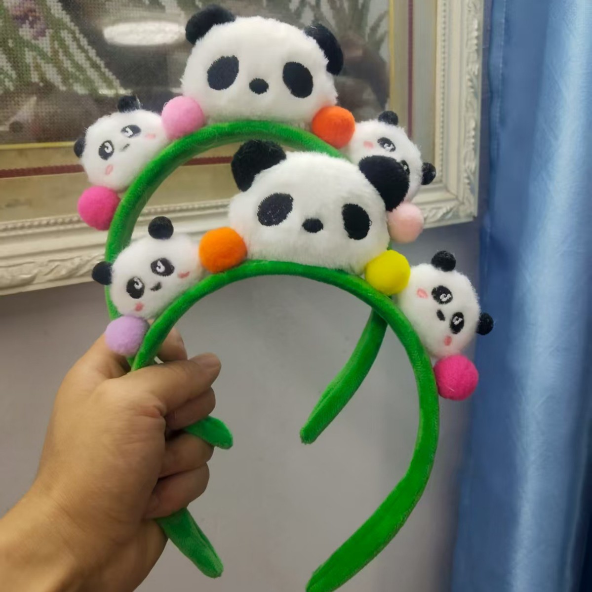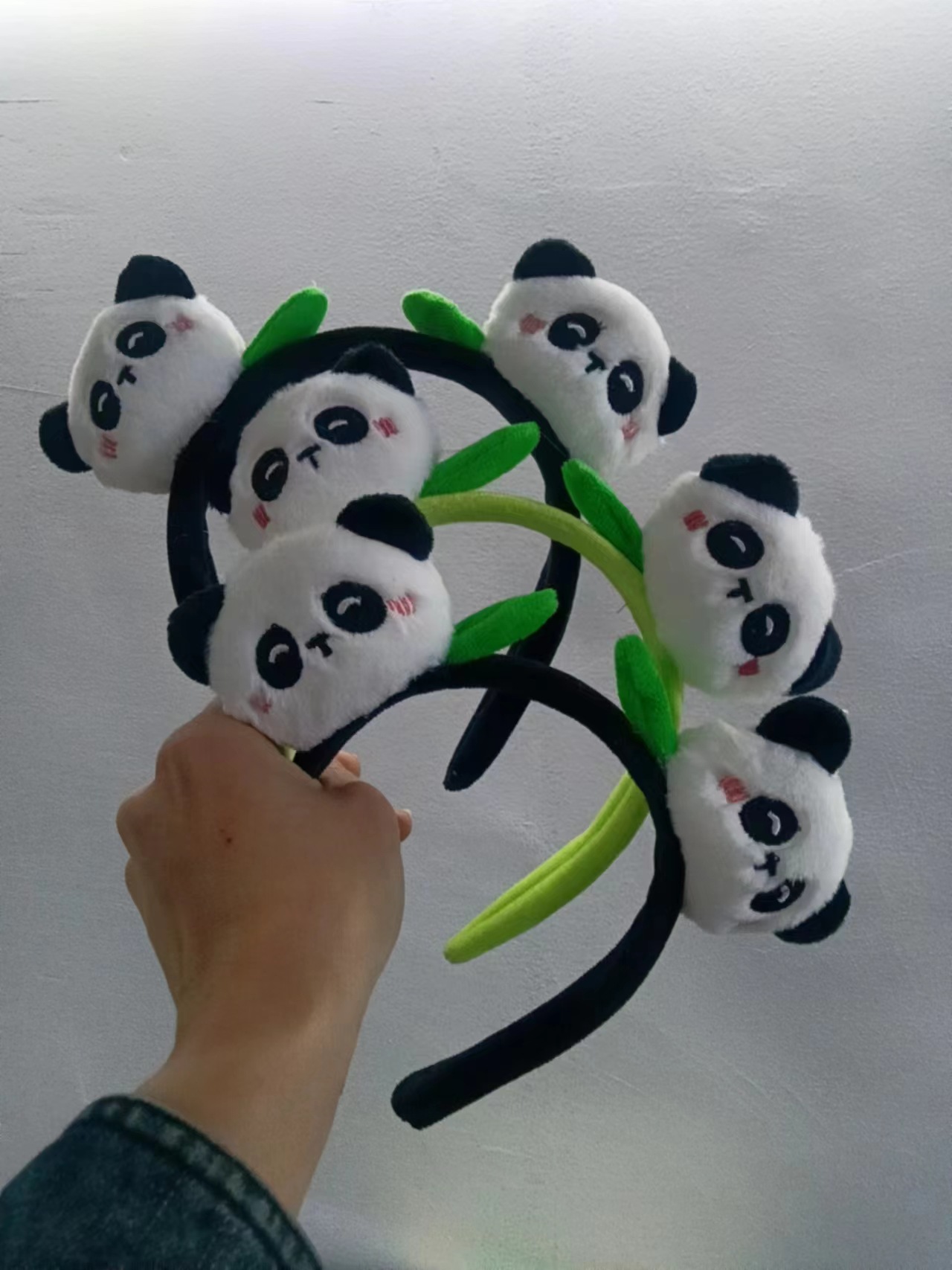可爱熊猫公仔发箍花花小熊猫头饰头箍动物园发卡发夹儿童洗脸发饰