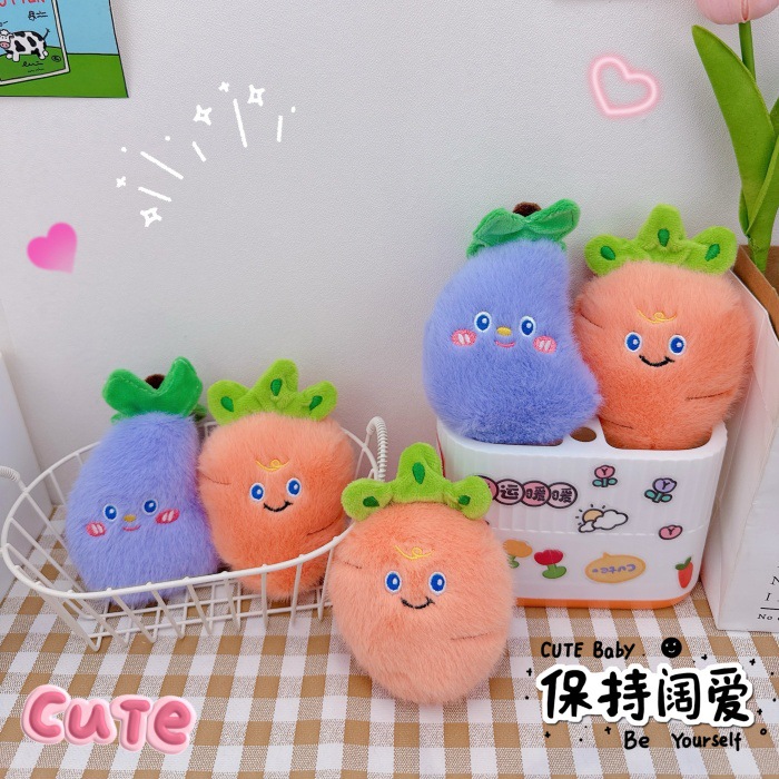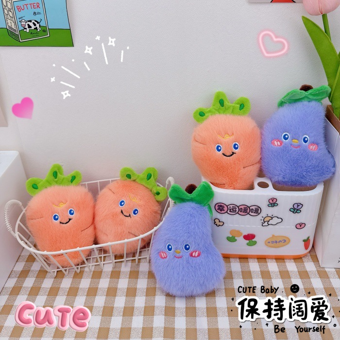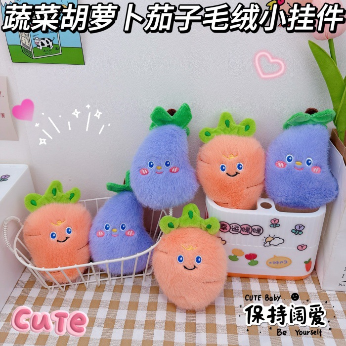 かわいい野菜シリーズのニンジンとナスのキーホルダー