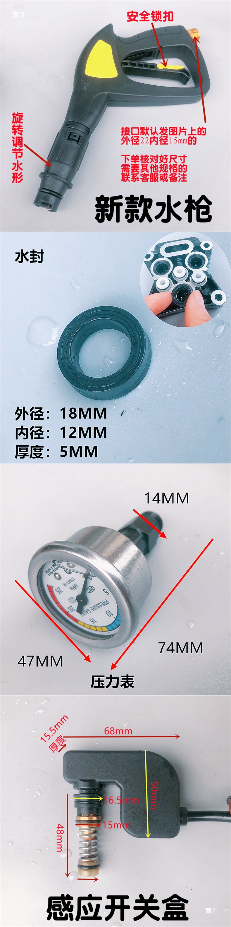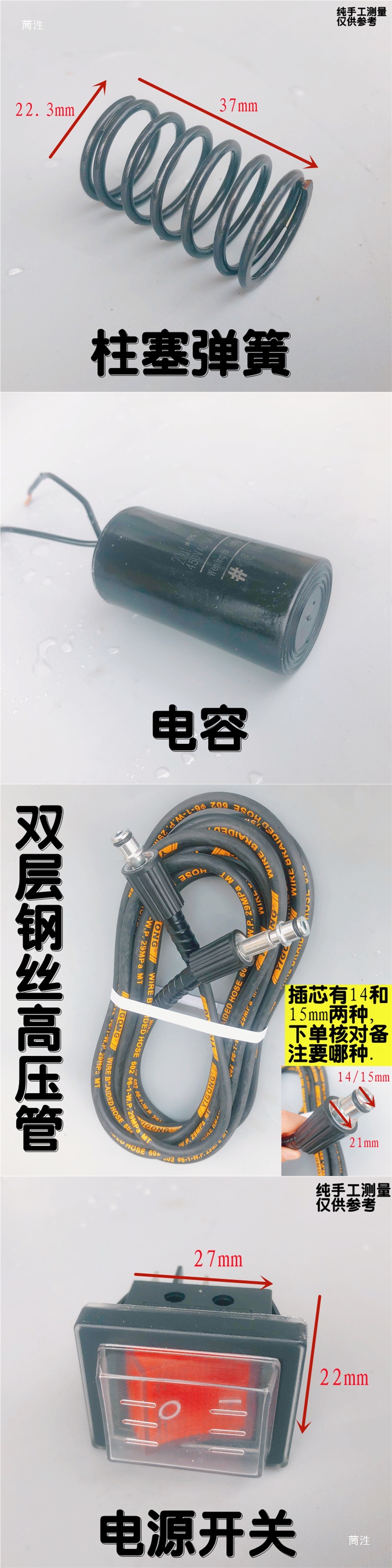 仕様とモデル ベアリング,傾斜プレート,おしゃぶり,電源スイッチ,漏れ修理キット,ウォーターシール,オイルシール,ロングウォーターバルブ3個,ショート水バルブ3個,圧力保持弁,プランジャー,プランジャースプリング,プラスチックインレットクラゲジョイント,黒い給水コネクタ,プロテクター,コンデンサ,ウォーターシールブラケット,ポンプカバーシールリング,マイクロスイッチボックス,8m クイックコネクト水道管,8m ネジ付き水道管,8m ガンヘッド付き水道管のセット,給水口改造クイックコネクトセット,水道管改造クイックコネクトセット,圧力計付きポンプカバー,圧力計付きポンプヘッドアセンブリ,クランクケース,ウォーターグラブ14インターフェース,新しい水鉄砲,圧力計 1 個,給水口コネクタ,大型オイルシール,2m つのチューブを備えた家庭用給水口アセンブリのセット,特殊三角ポンプ 備考 プランジャー55または52