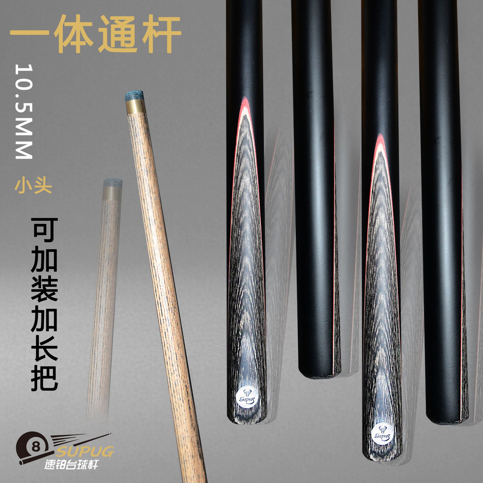 奥秘枪手通杆台球杆斯诺克手工台球杆黑八球杆小头16彩桌球杆