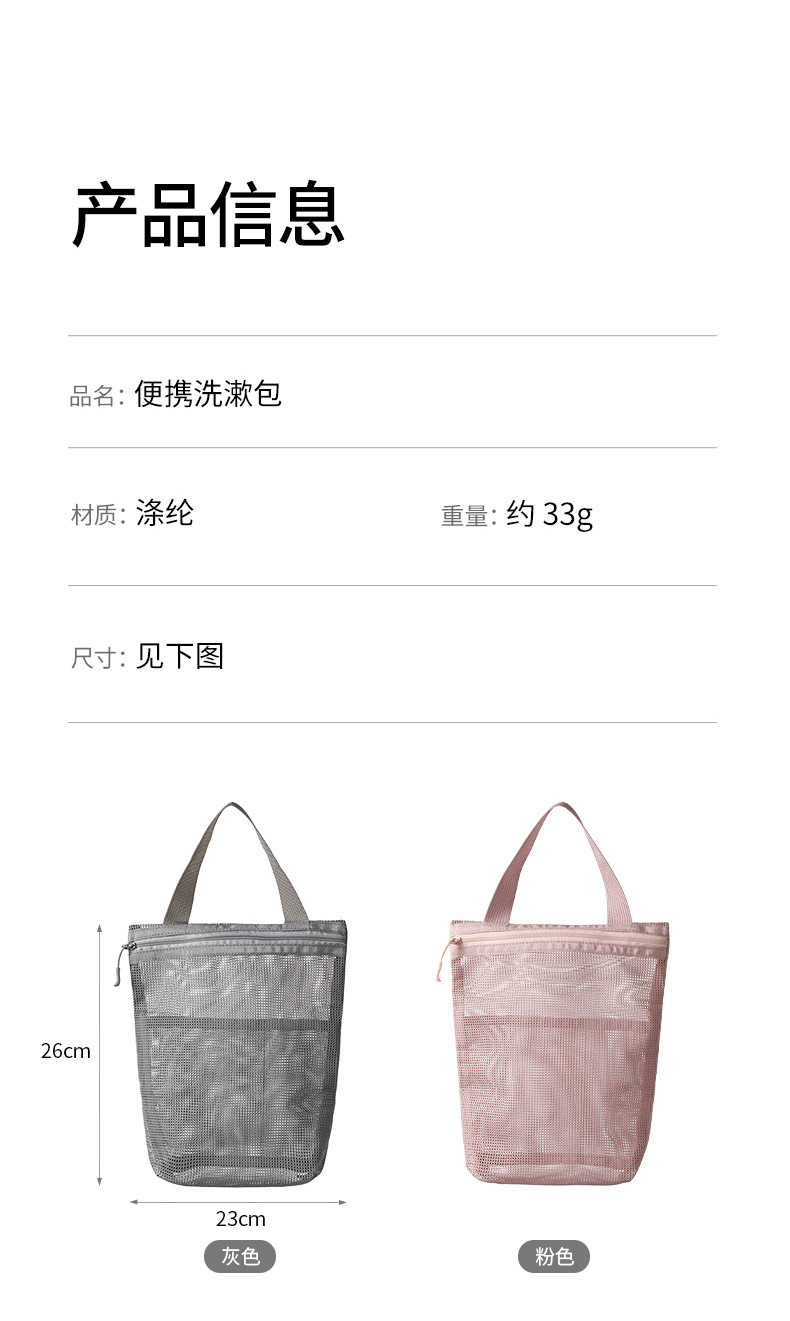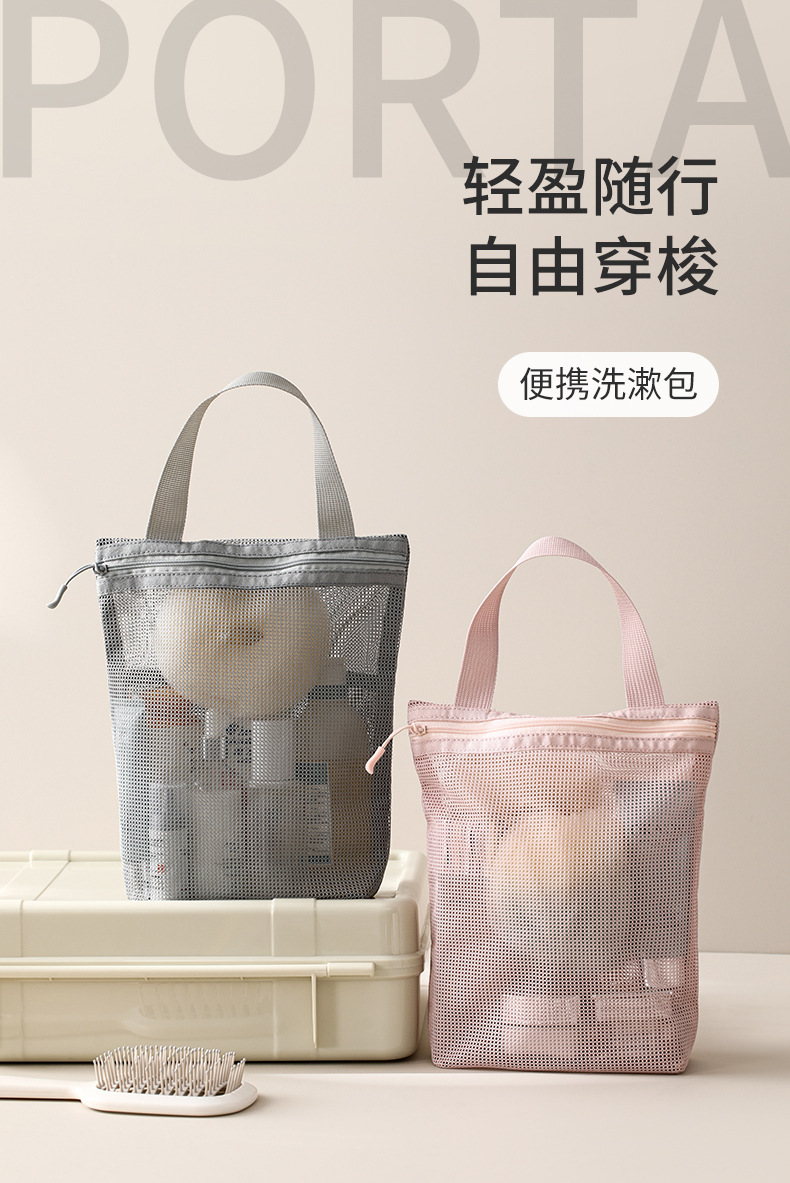 日本ファソラ携帯洗面バッグ男女手提げ収納袋出張旅行大容量メッシュ入浴バッグ