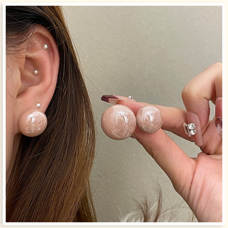 韓国版ドーパミンカラー球形イヤリング女性2025新型ファッション樹脂ピアス甘美で可愛いビーズピアス