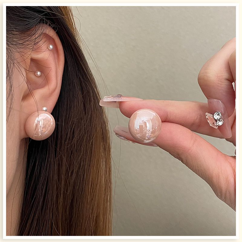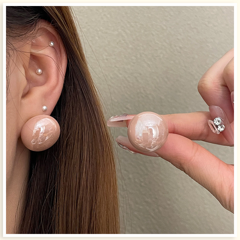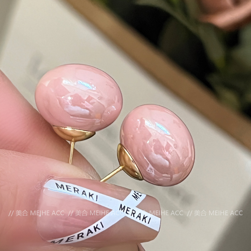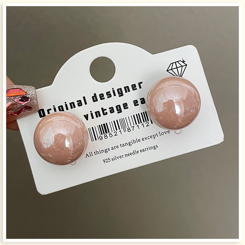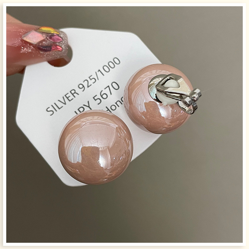高级フレンチピンクラウンドビーンピアス女性S925シルバー针マントー真珠ピアスなしピアスピアス