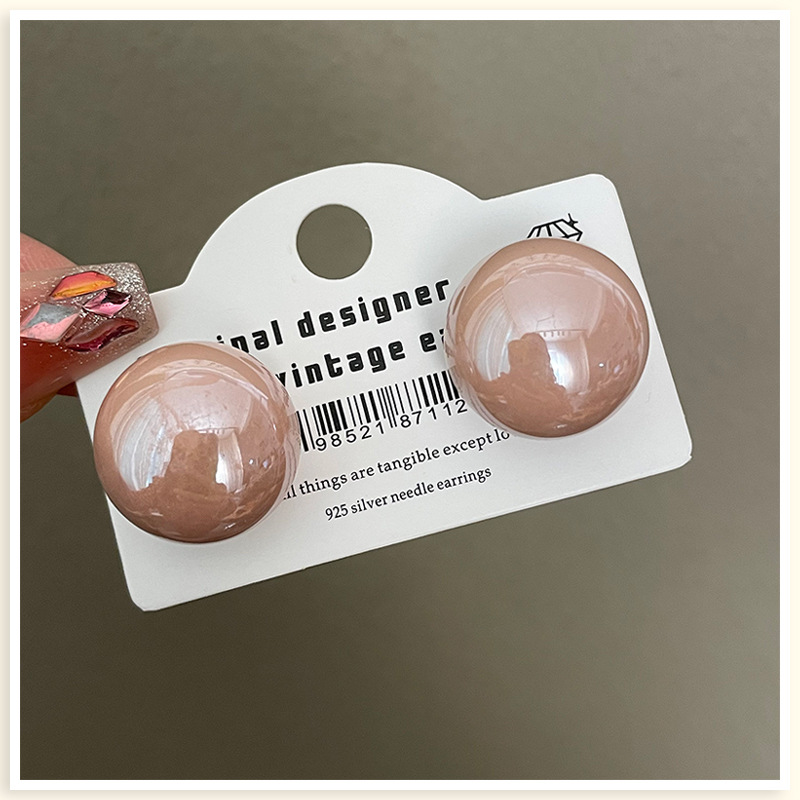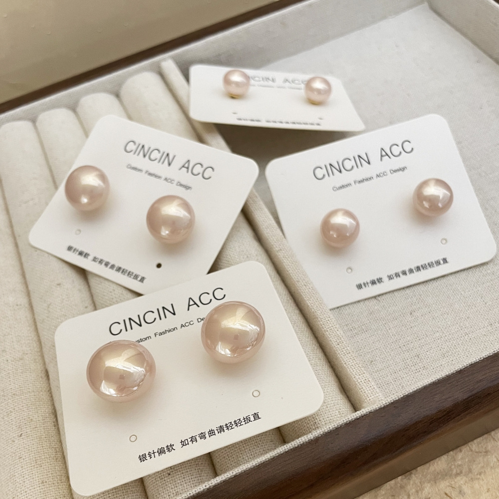 少女の円舞曲 ~ 韓国版の優雅で柔らかいピンクのマントーの真珠のピアスのフランスの気質の丸い豆のイヤリングの女性