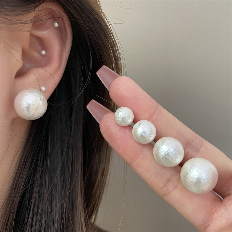 フランスの霧の顔の艶消しの真珠のピアスの女性s 925銀の針のつや消しの質感のマントーの玉のイヤリングの優雅な気質の耳飾り