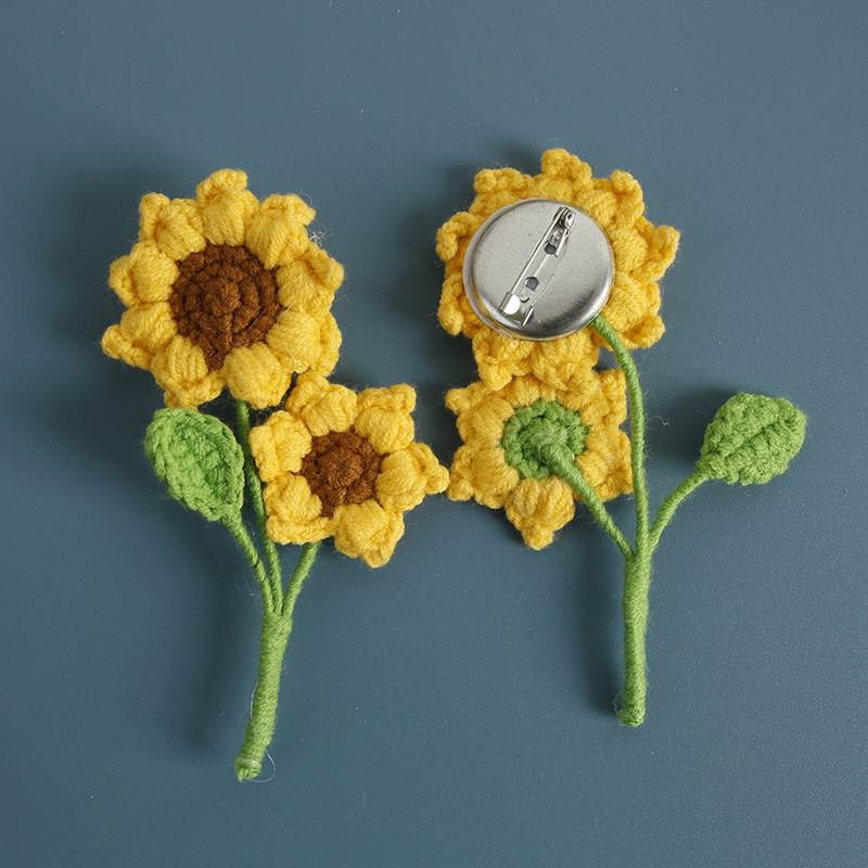 新款毛线钩织多头向日葵胸针 手工编织葵花衣服别针装饰 手作配饰