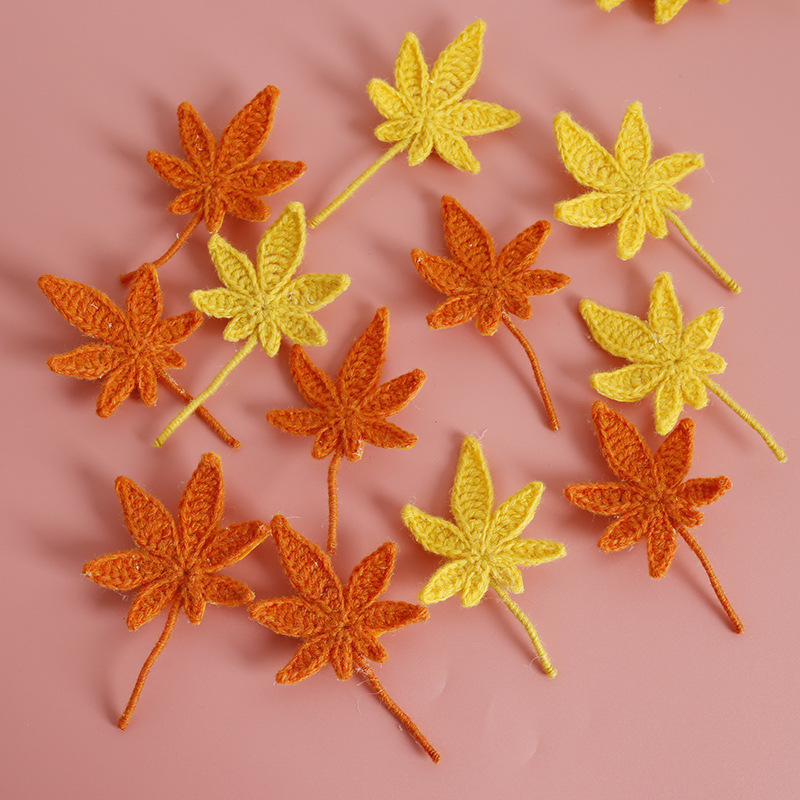 新しい手作りのカシミヤのブローチのアイデアの毛糸はカエデの葉の装飾品を編みます。