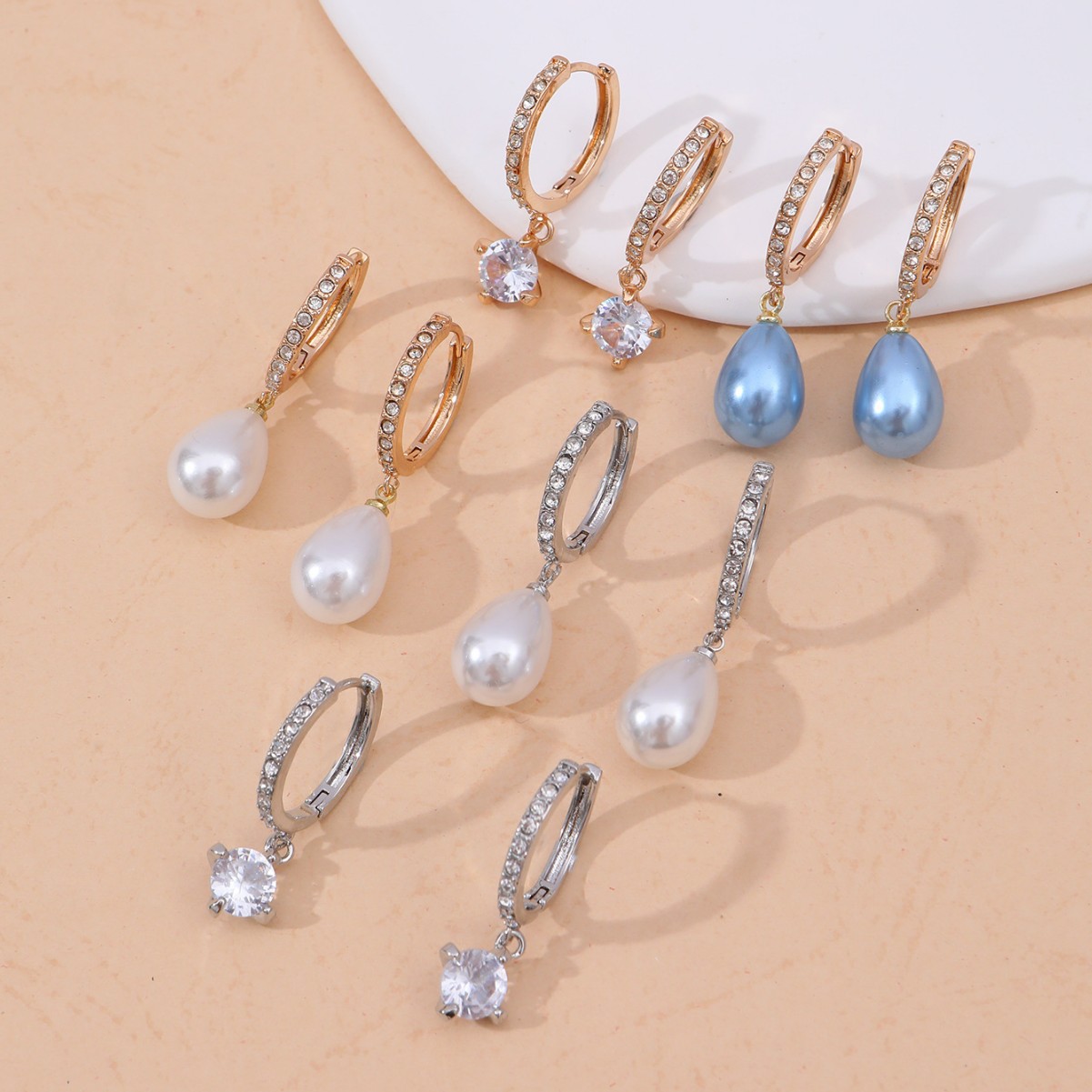 时尚韩国首饰紫色珍珠耳环圈 耳饰 耳勾金色白色珍珠耳钉 耳坠