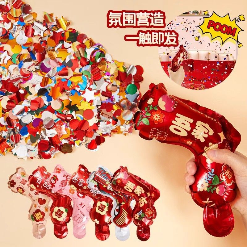 手持充气礼花枪拍照道具喷花枪婚庆用品创意接亲氛围感结婚礼炮