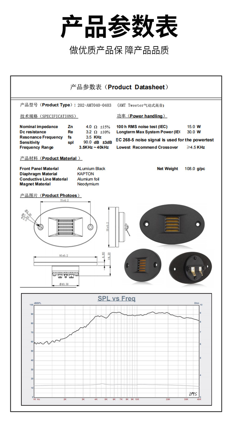 シルク高音スピーカー4インチパネル高音スピーカーHifi高音スピーカー外磁高音スピーカー