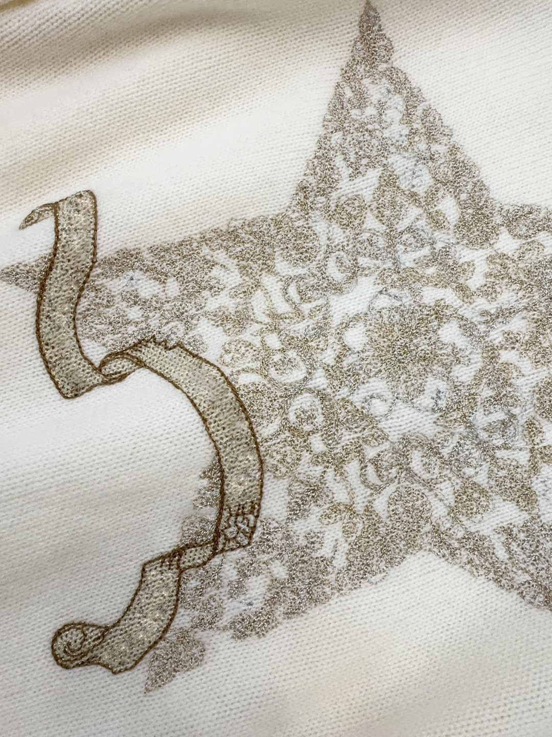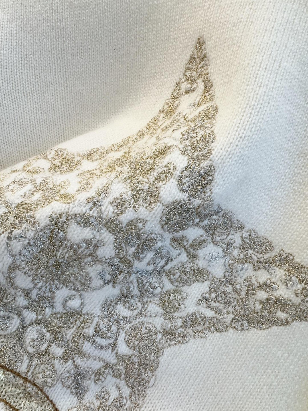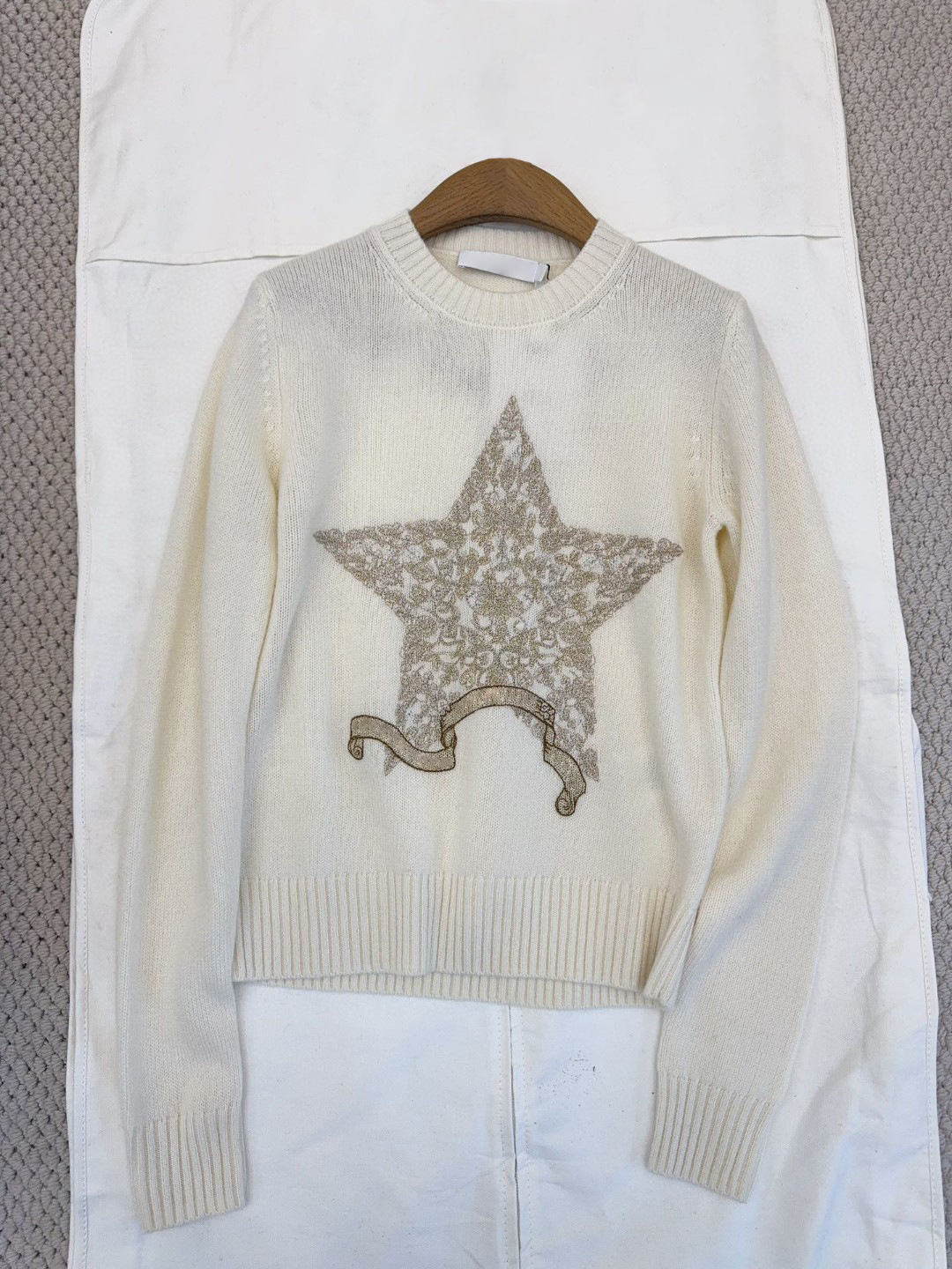 现货D家2025秋冬天空幻境星星亚麻灰手工刺绣羊绒套头长袖毛衣女
